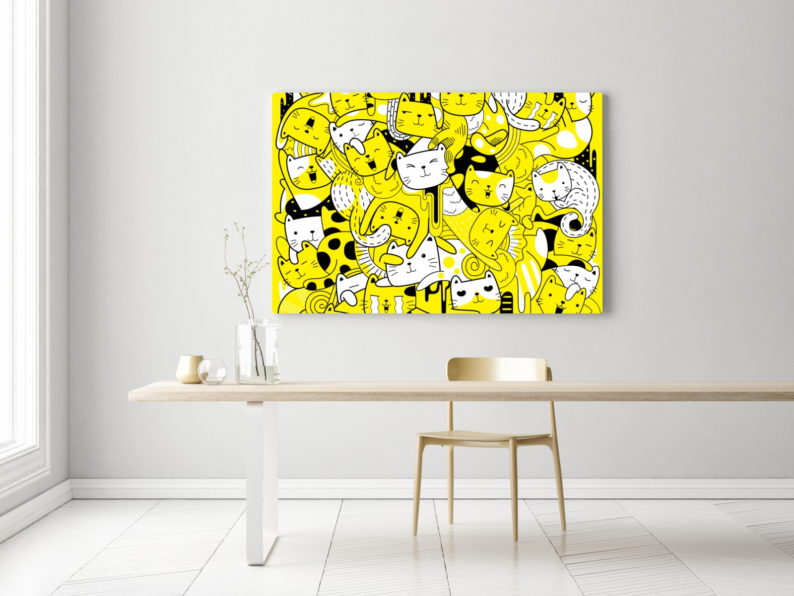Obraz na płótnie Zabawna żółta mozaika kotów