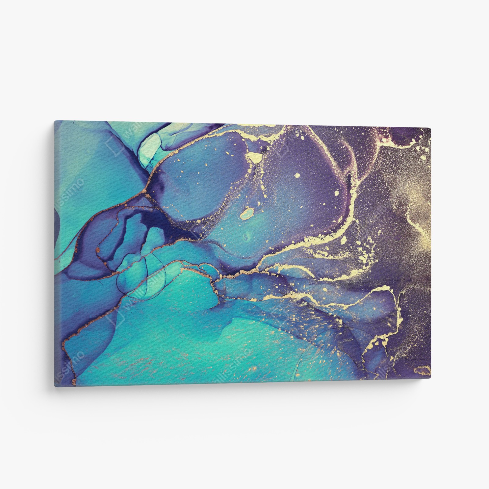 Obraz na płótnie Turkusowo-złota płynna marmurkowa abstrakcja