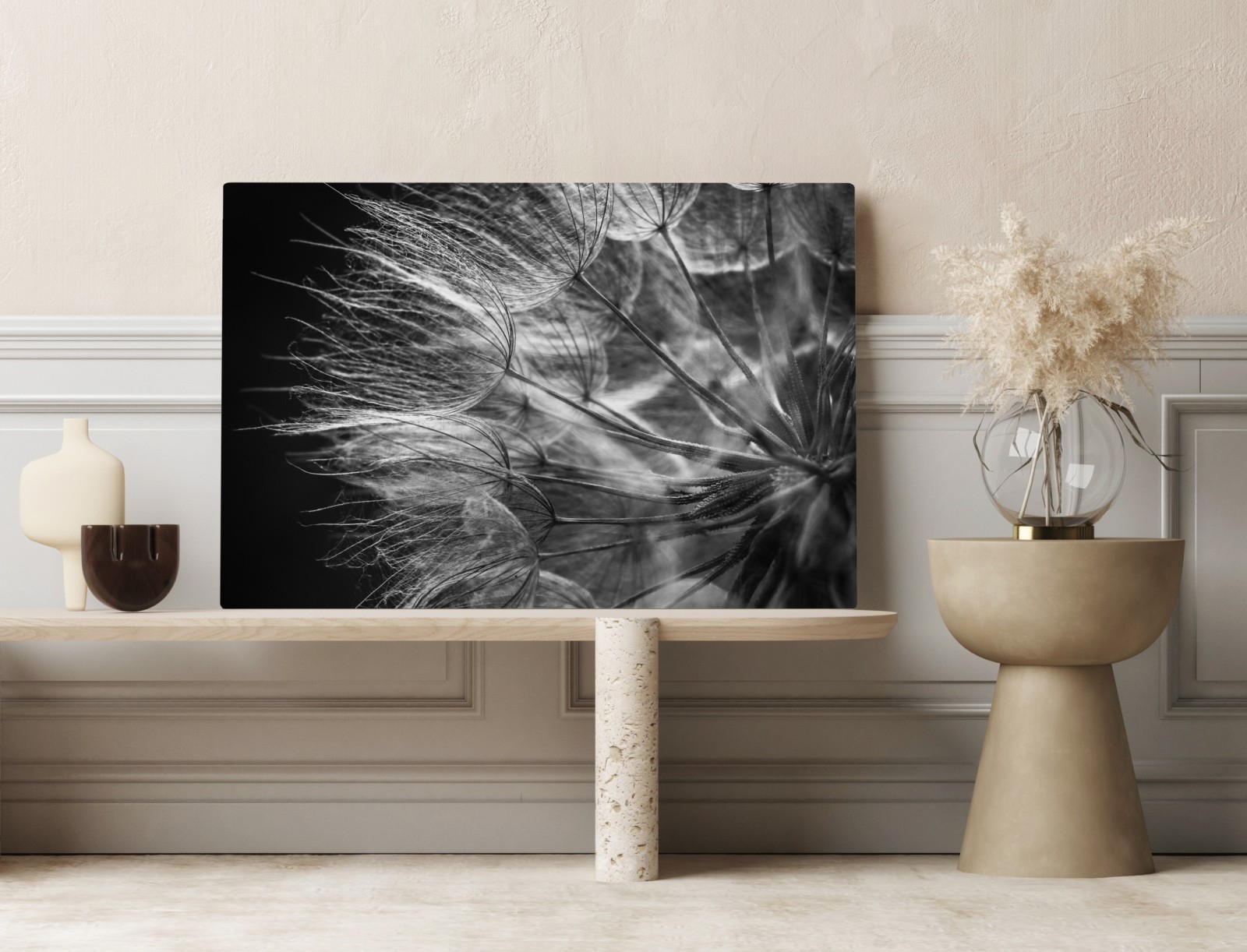 Obraz na płótnie Delikatny puch dmuchawca w monochromie