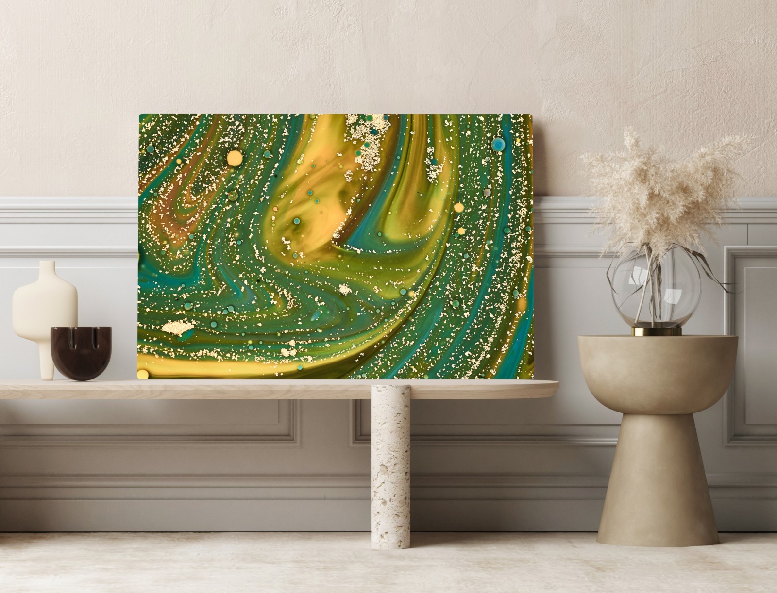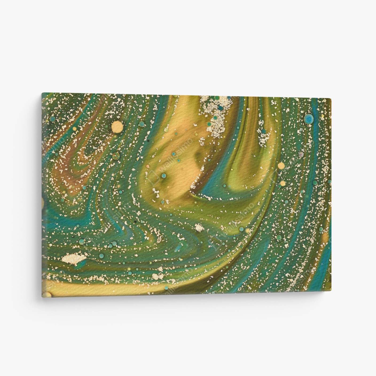 Obraz na płótnie Zielono-złota płynna marmurkowa grafika