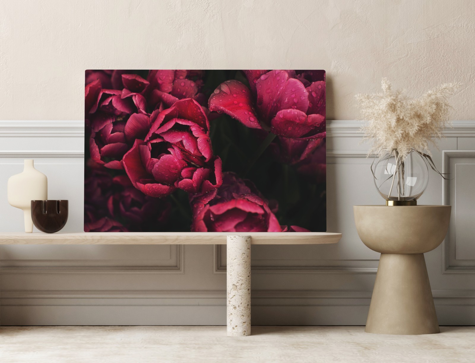 Dodaj do wnętrza nutę nastrojowego romantyzmu dzięki zbliżeniowym kwiatom ozdobionym kroplami wody.WięcejMniej