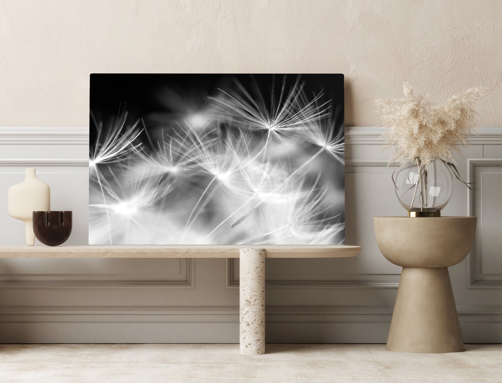 Obraz na płótnie Delikatne nasiona dmuchawca czarno-białe