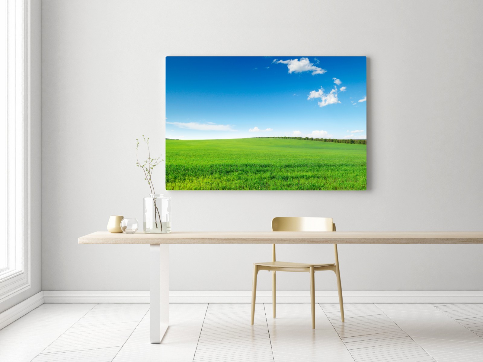 Obraz na płótnie Spokojna zielona łąka pod niebieskim niebem
