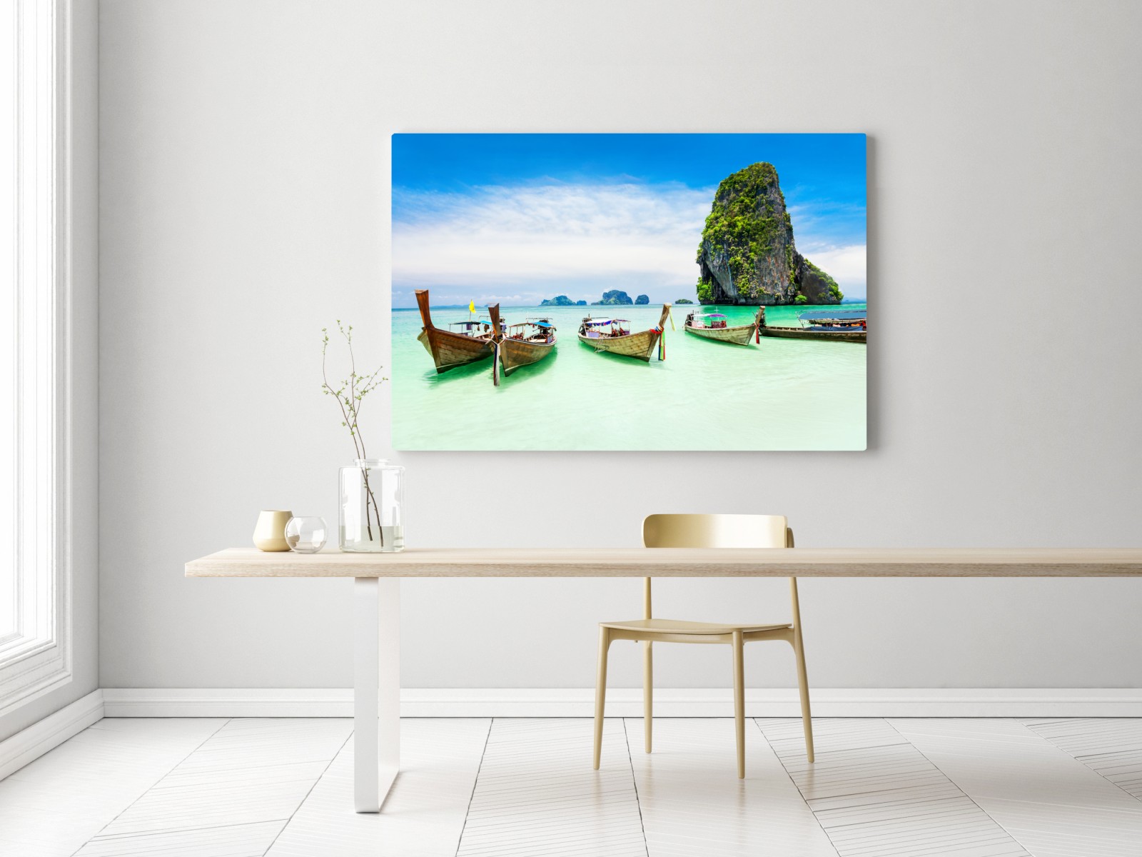 Obraz na płótnie Tropikalne łodzie longtail na turkusowej plaży