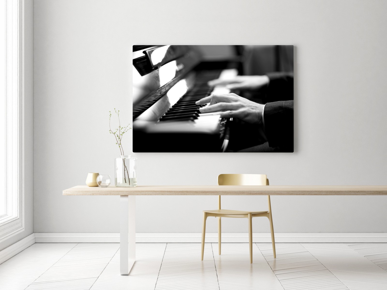Obraz na płótnie Ręce przy klawiaturze fortepianu w czerni i bieli