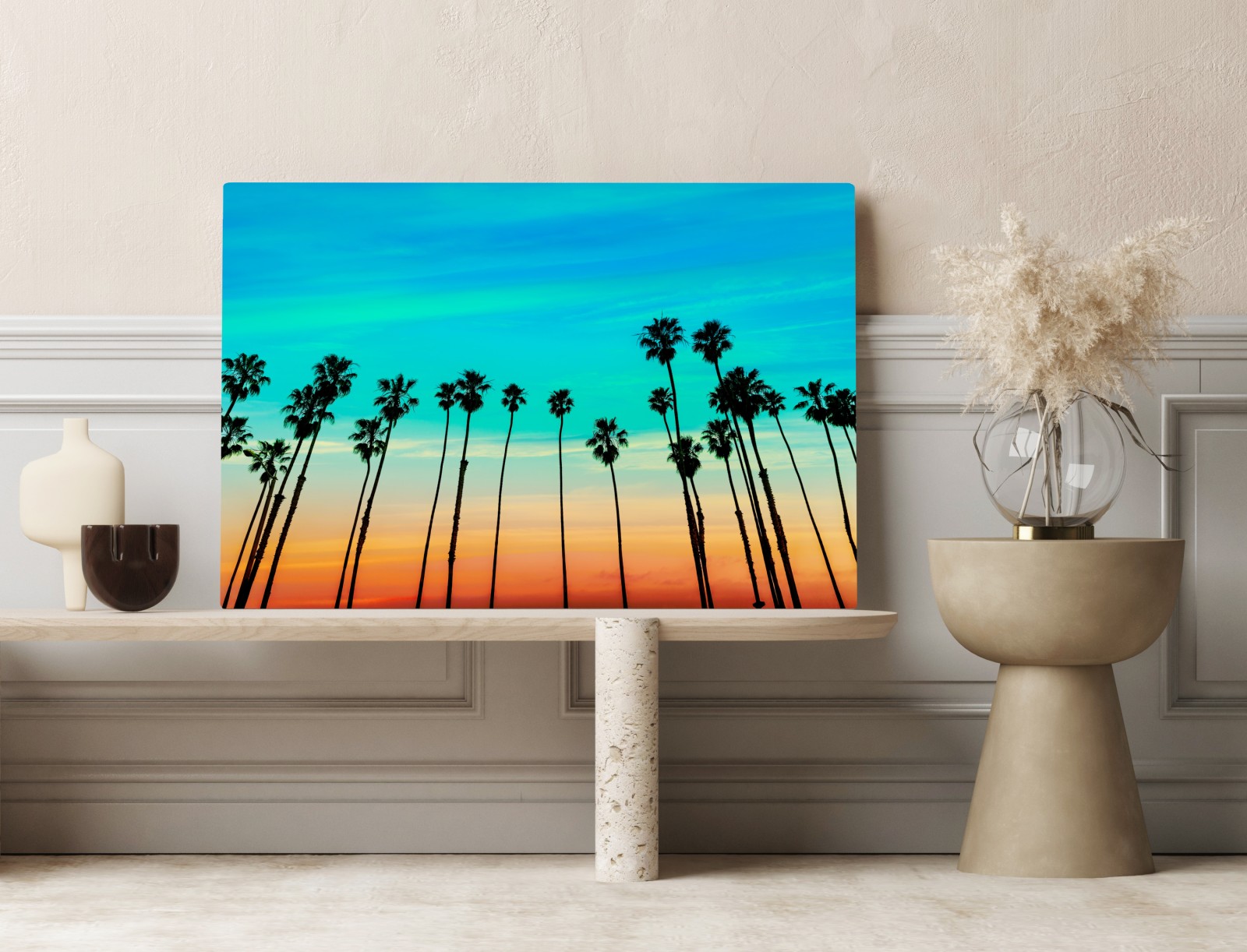 Obraz na płótnie Palmy o zachodzie słońca w Kalifornii