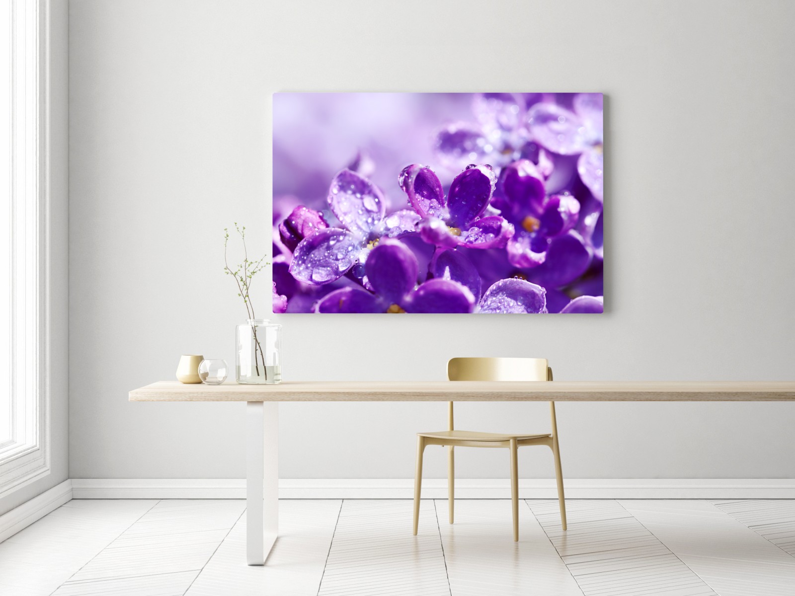 Obraz na płótnie Fioletowy bez z kroplami rosy