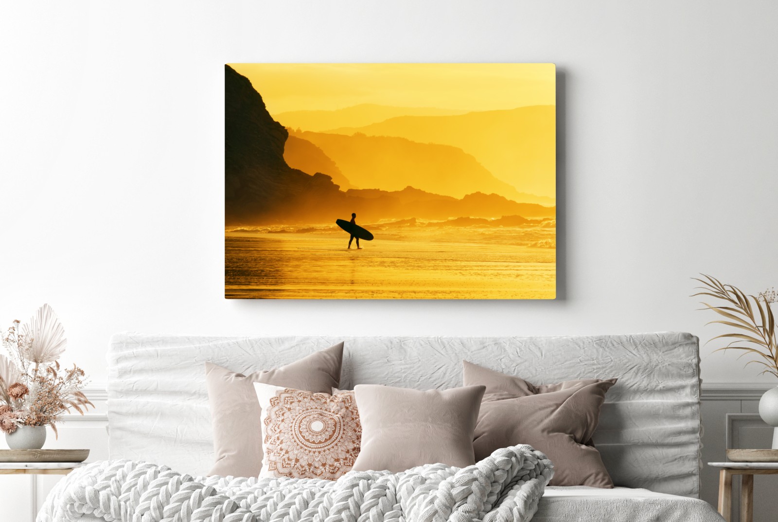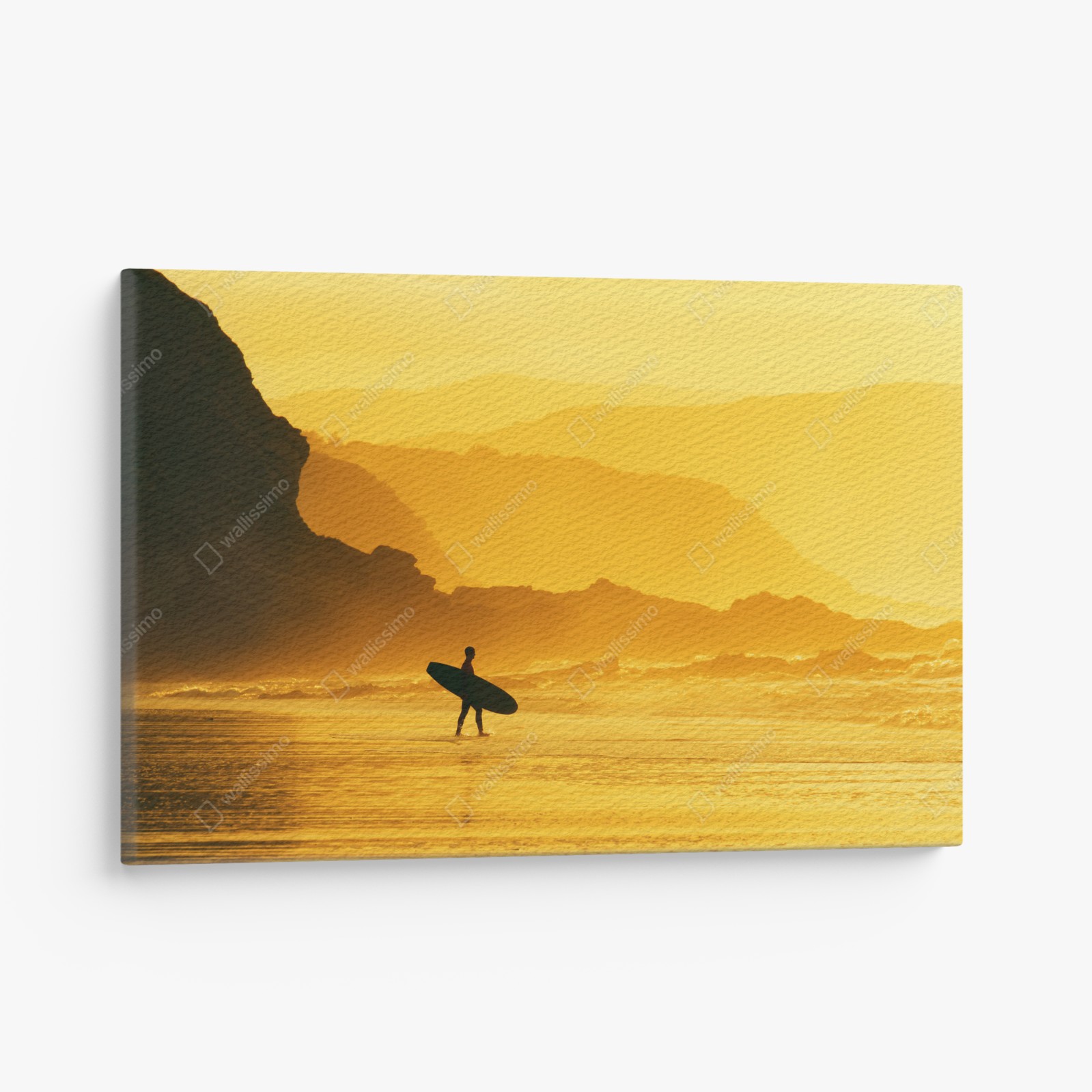 Obraz na płótnie Surfer przy złotym zachodzie słońca
