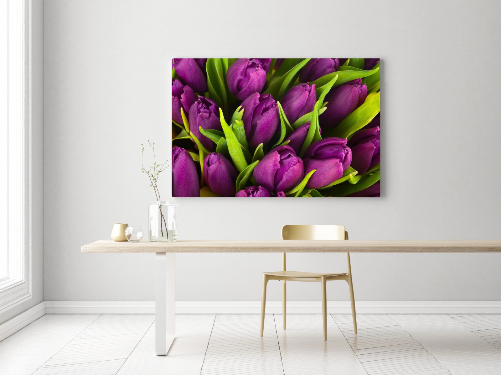 Wprowadź do wnętrza intensywne fioletowe tulipany dzięki temu wysokiej jakości zbliżeniu, idealnemu jako naturalny akcent w każdym pomieszczeniu.WięcejMniej