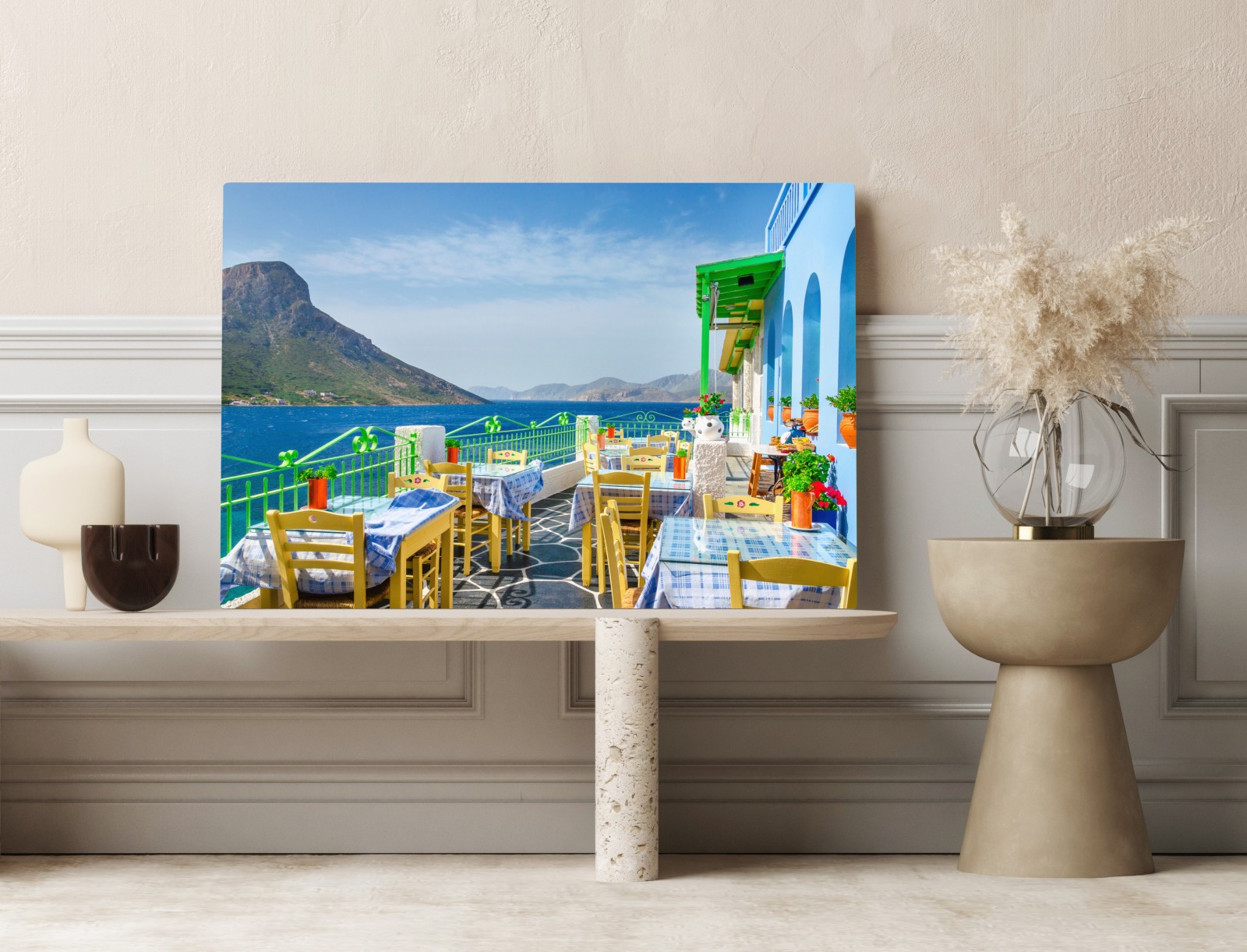 Obraz na płótnie Słoneczny taras nadmorski z widokiem na morze