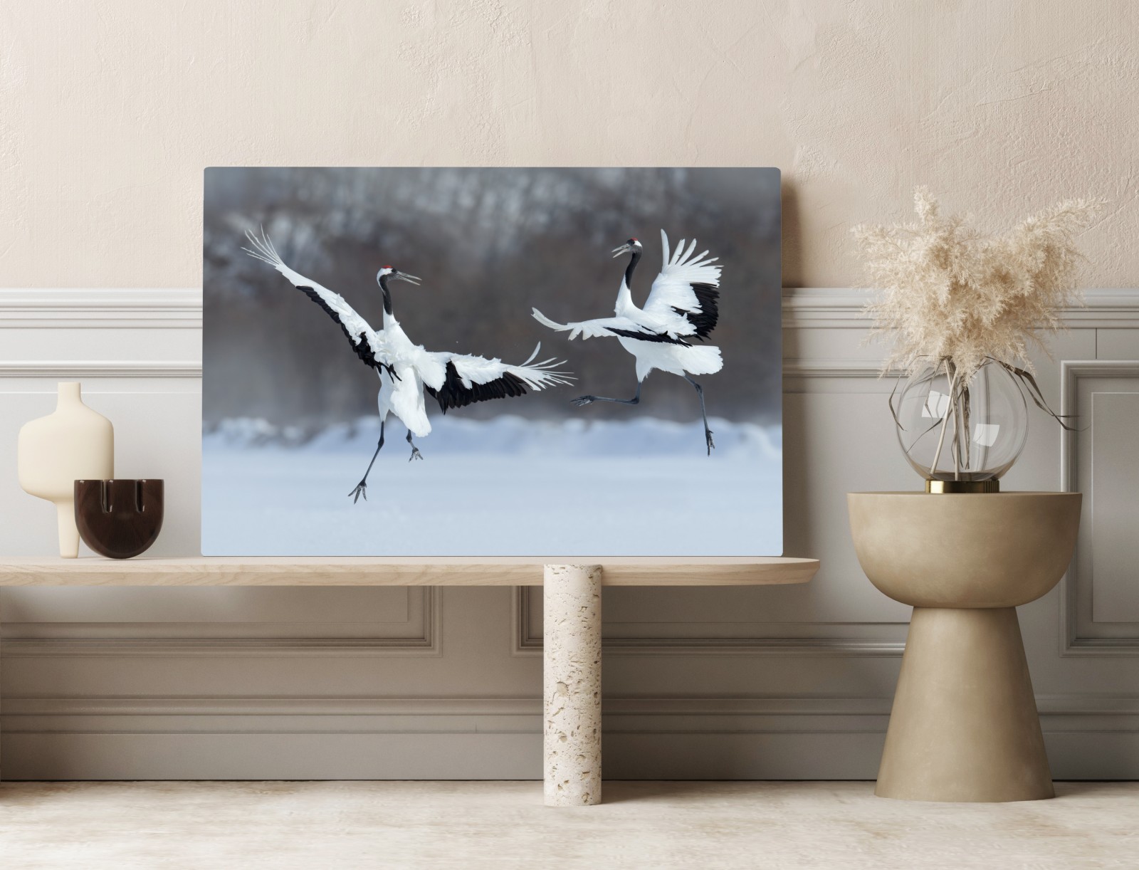 Obraz na płótnie Tańczące żurawie koroniaste na śniegu, Hokkaido