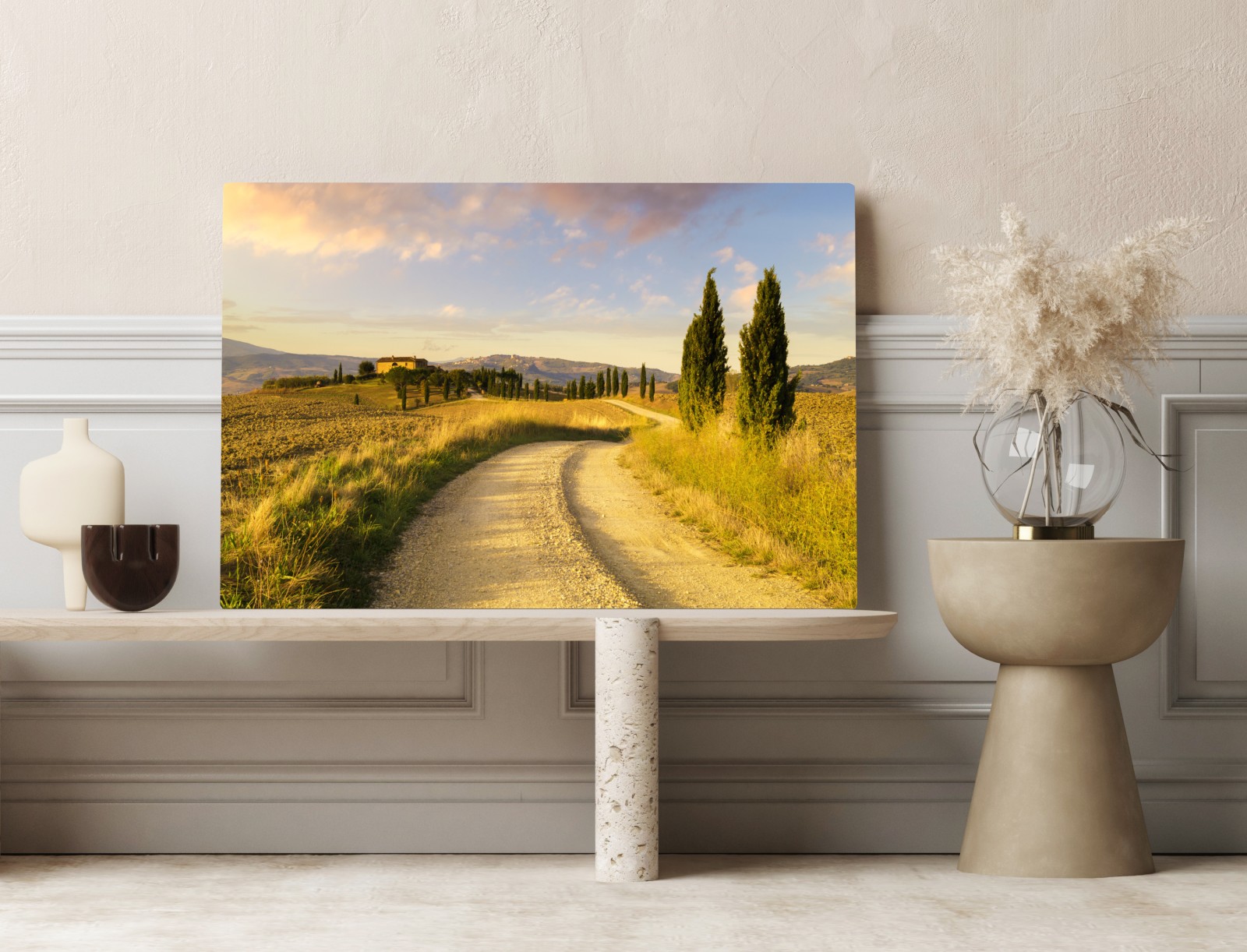 Obraz na płótnie Złota wiejska droga wśród cyprysów