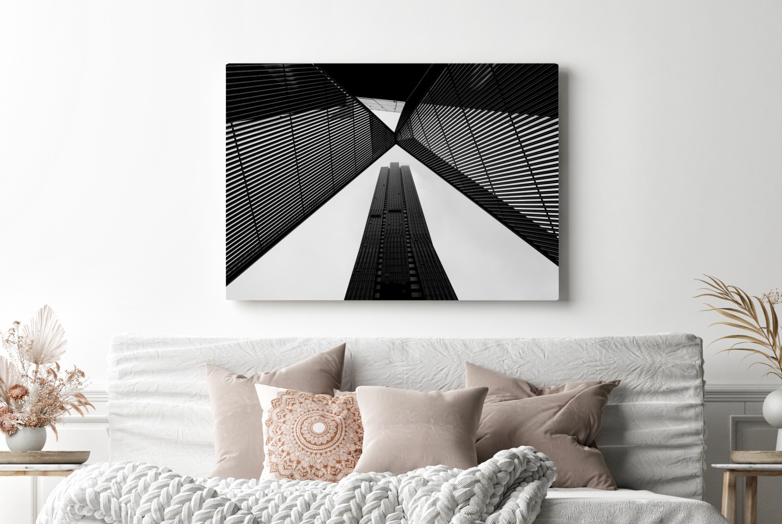Wprowadź moc miejskiego stylu do wnętrza dzięki kontrastowej czarno-białej kompozycji wieżowców i metalowej geometrii.WięcejMniej