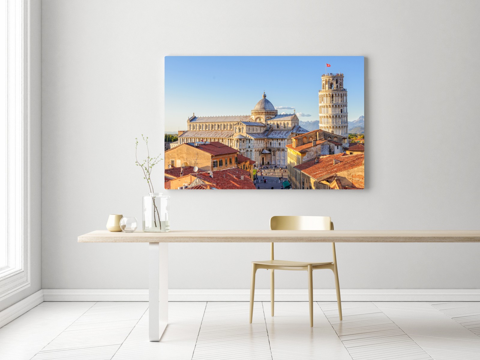 Obraz na płótnie Słoneczny widok na katedrę w Pizie i krzywą wieżę