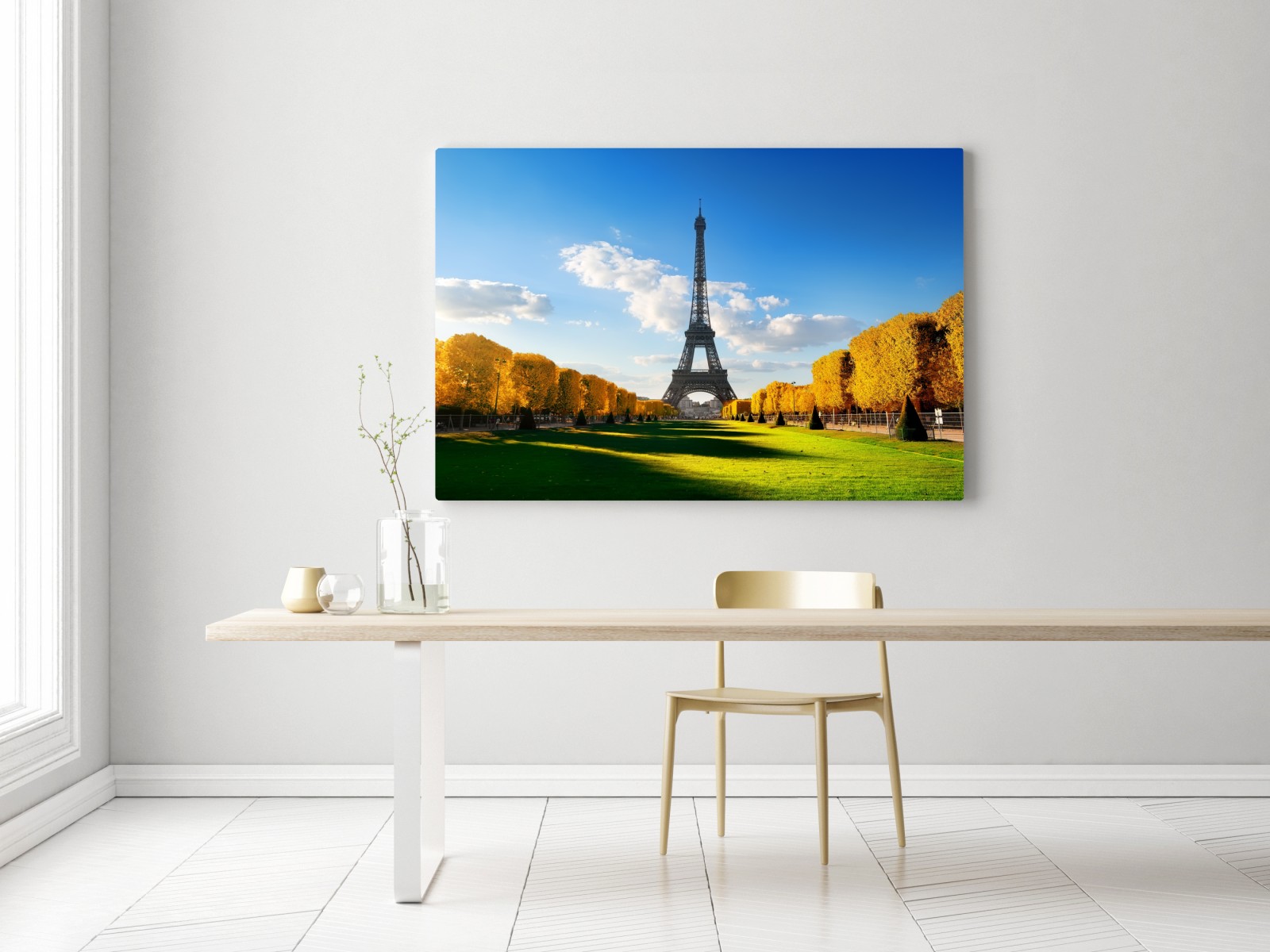 Wprowadź paryski urok do wnętrza dzięki żywej panoramie Wieży Eiffla otoczonej kwitnącymi drzewami i zielonymi trawnikami.WięcejMniej
