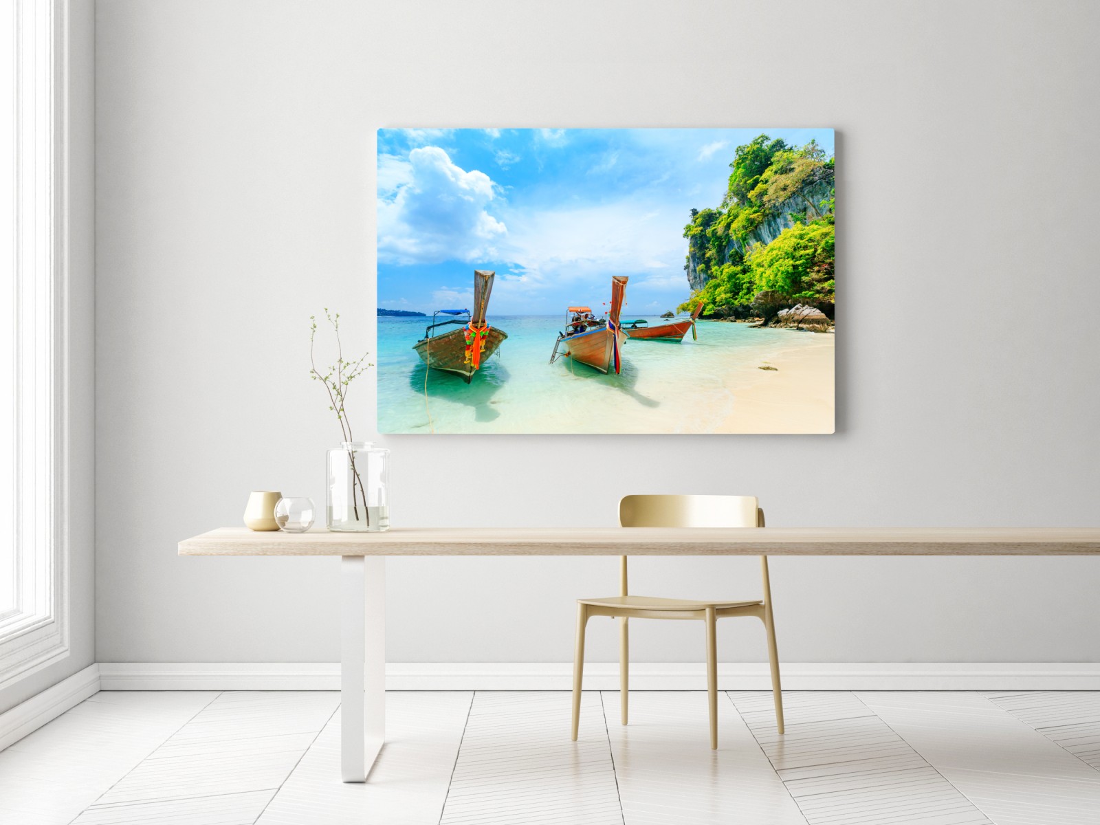 Obraz na płótnie Łodzie longtail na turkusowej plaży w Phuket