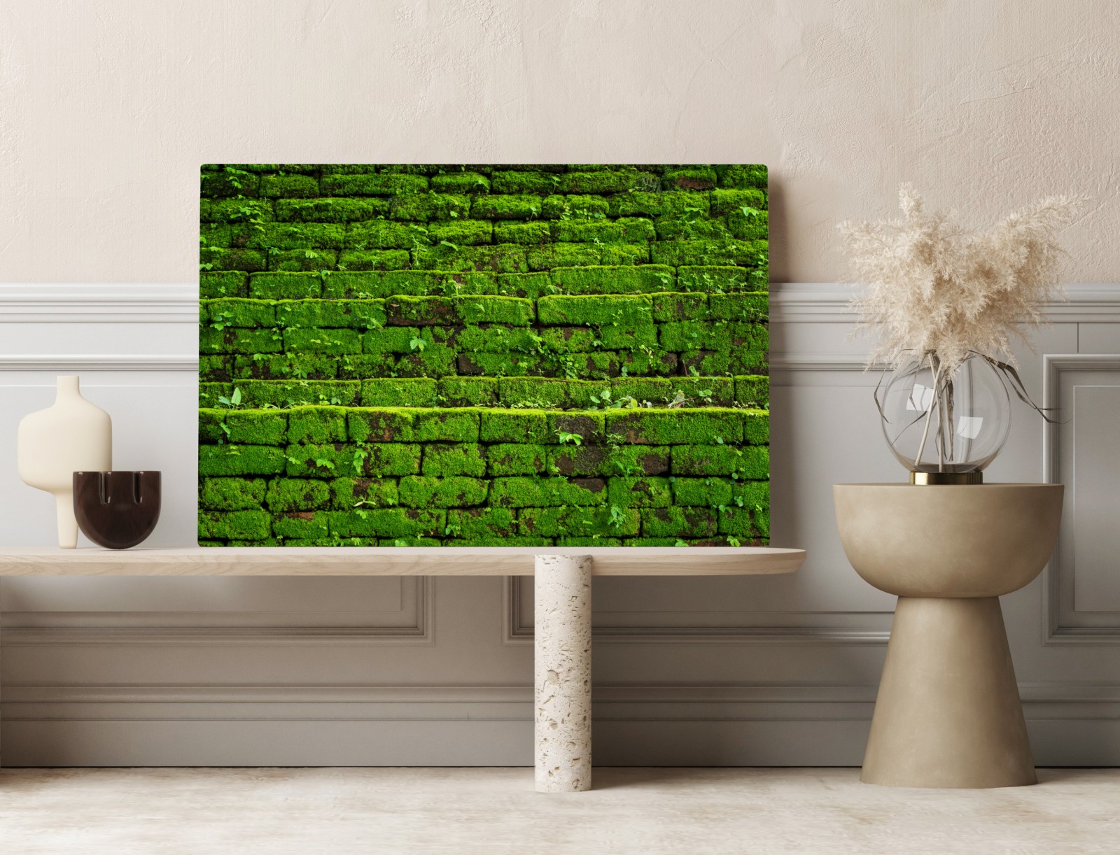 Obraz na płótnie Ściana z mchem na ceglanej strukturze