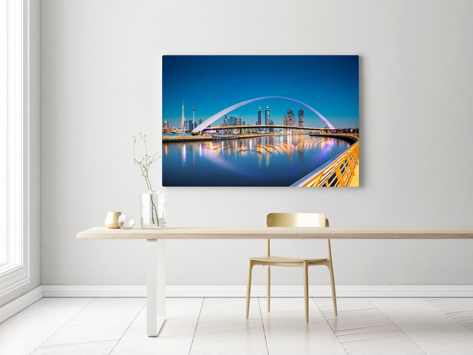 Obraz na płótnie Dubaj panorama miasta z oświetlonym mostem