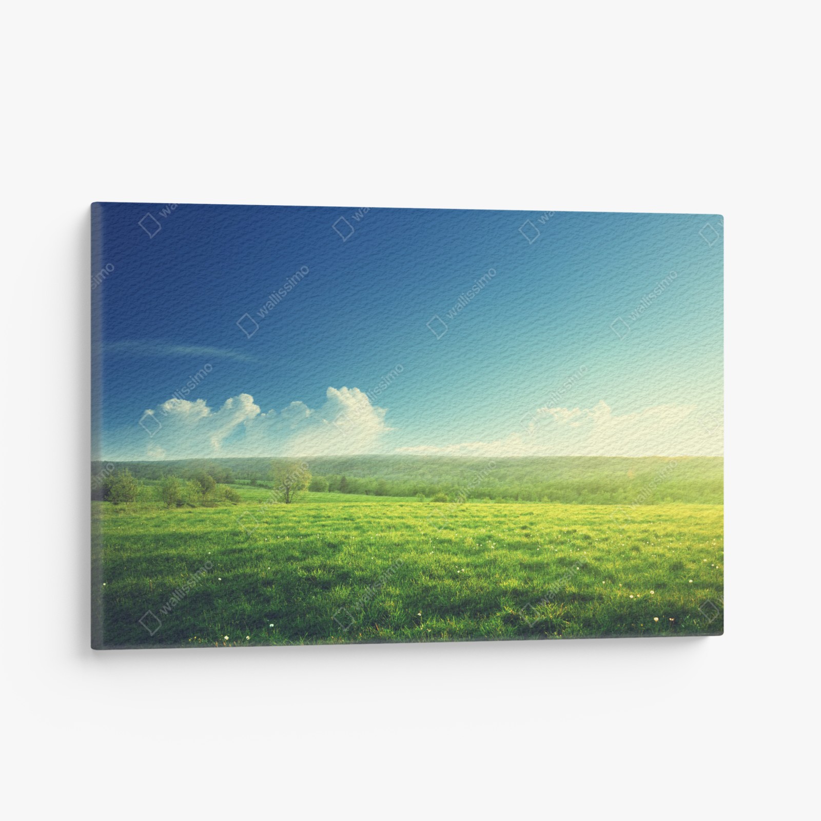 Obraz na płótnie Słoneczna wiosenna łąka o zachodzie słońca