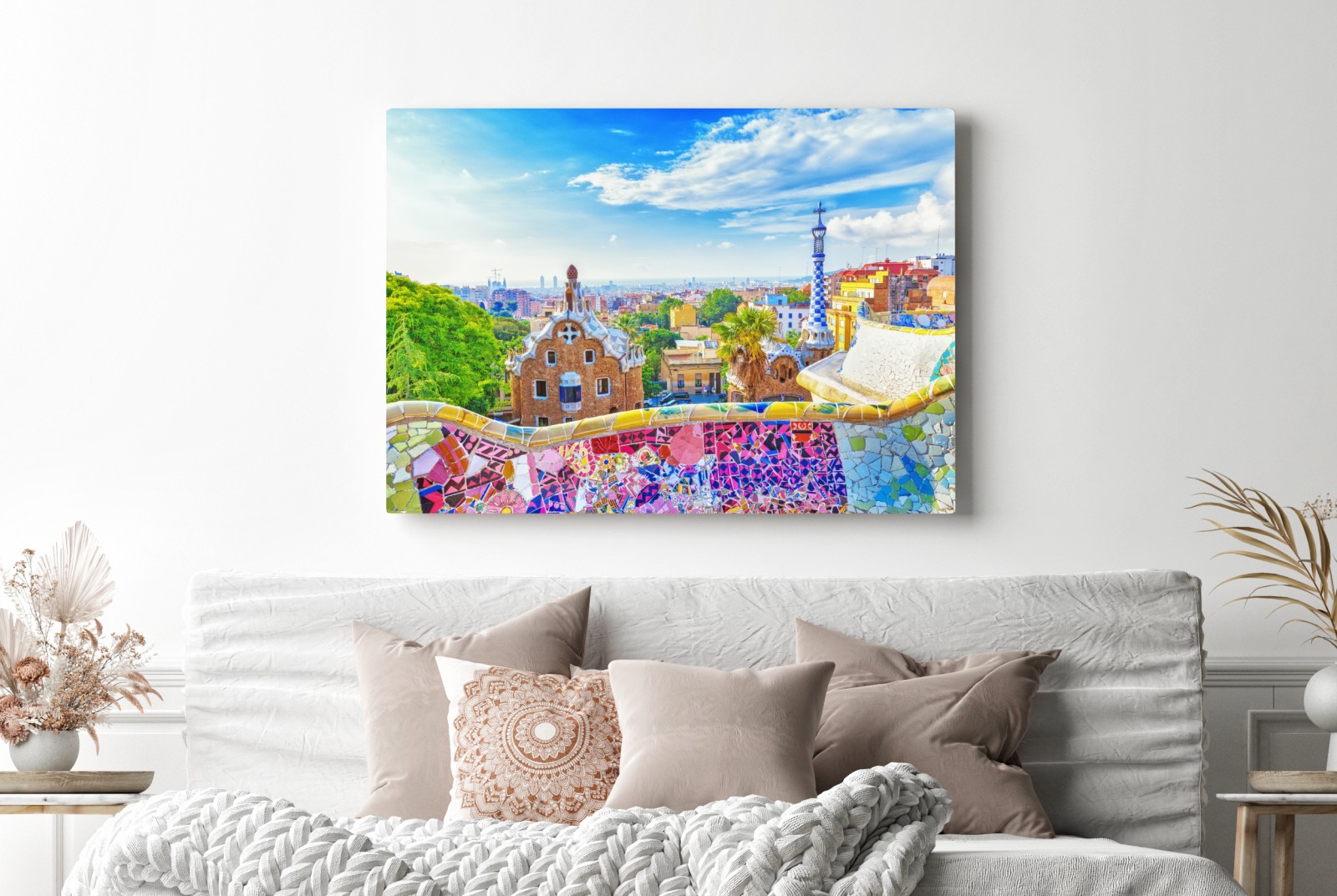 Obraz na płótnie Żywa Barcelona Park Güell mozaikowa panorama