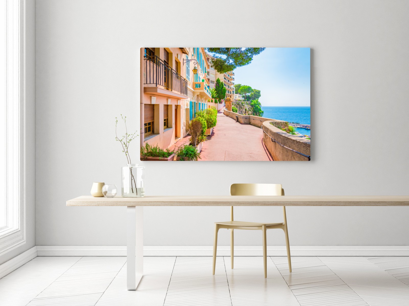 Obraz na płótnie Śródziemnomorska promenada z pastelowymi kamienicami