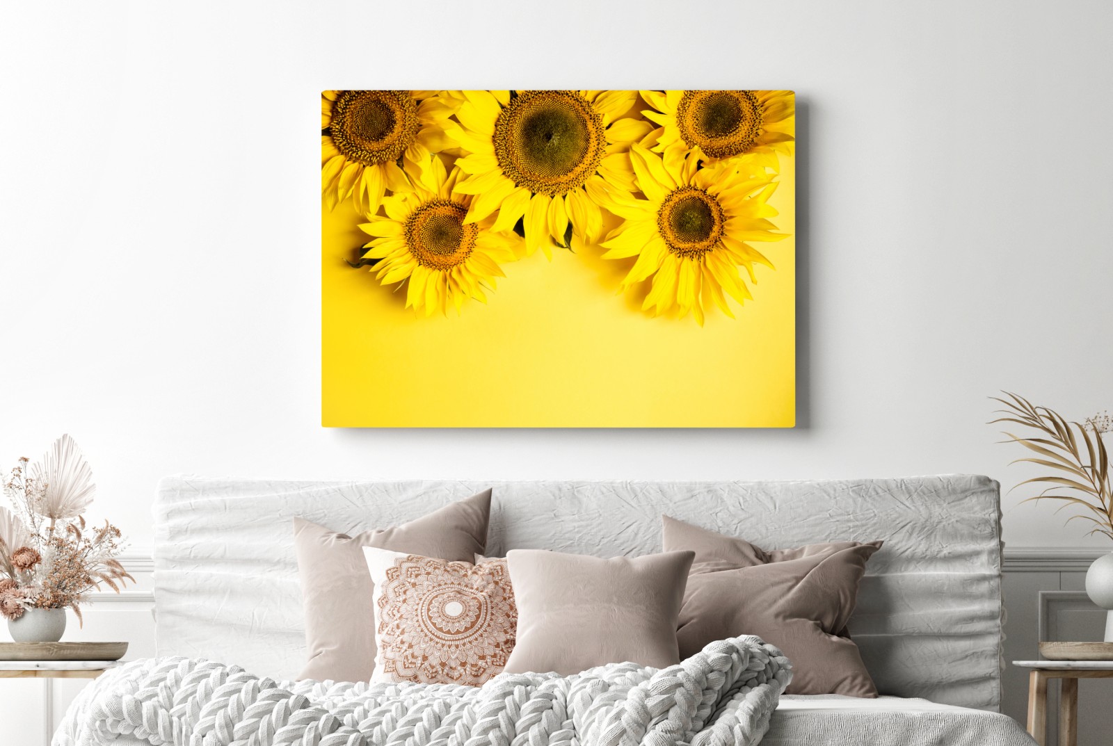 Obraz na płótnie Jasny bukiet słoneczników na żółtym tle
