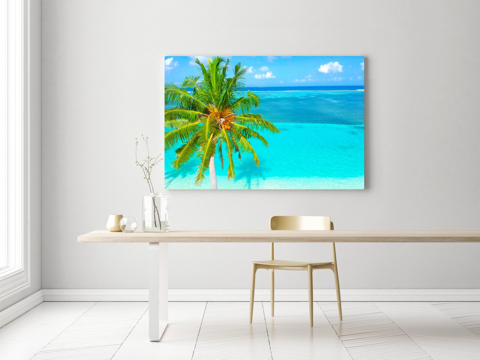Obraz na płótnie Tropikalna turkusowa plaża z palmą