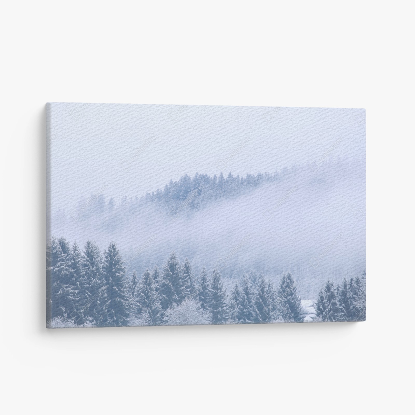 Obraz na płótnie Zimowa mgła nad lasem iglastym