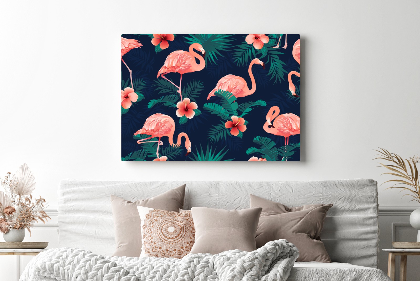 Obraz na płótnie Tropikalny różowy wzór z flamingami