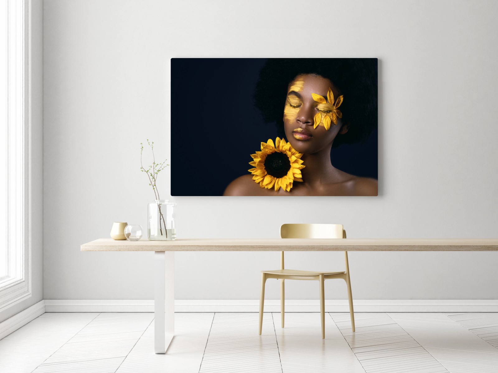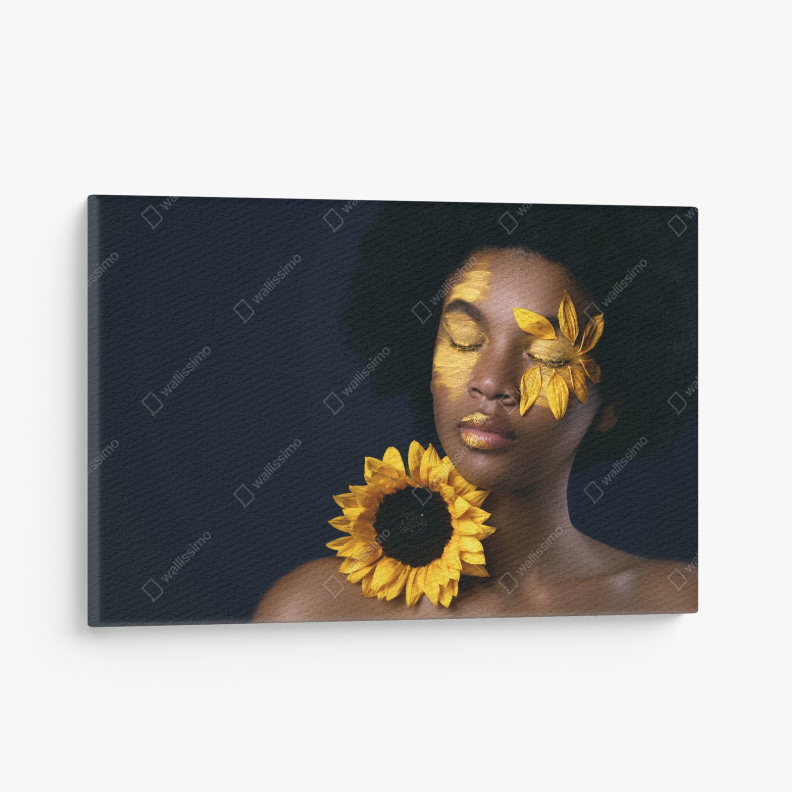Obraz na płótnie Słonecznikowa muza: portret z płatkami słonecznika