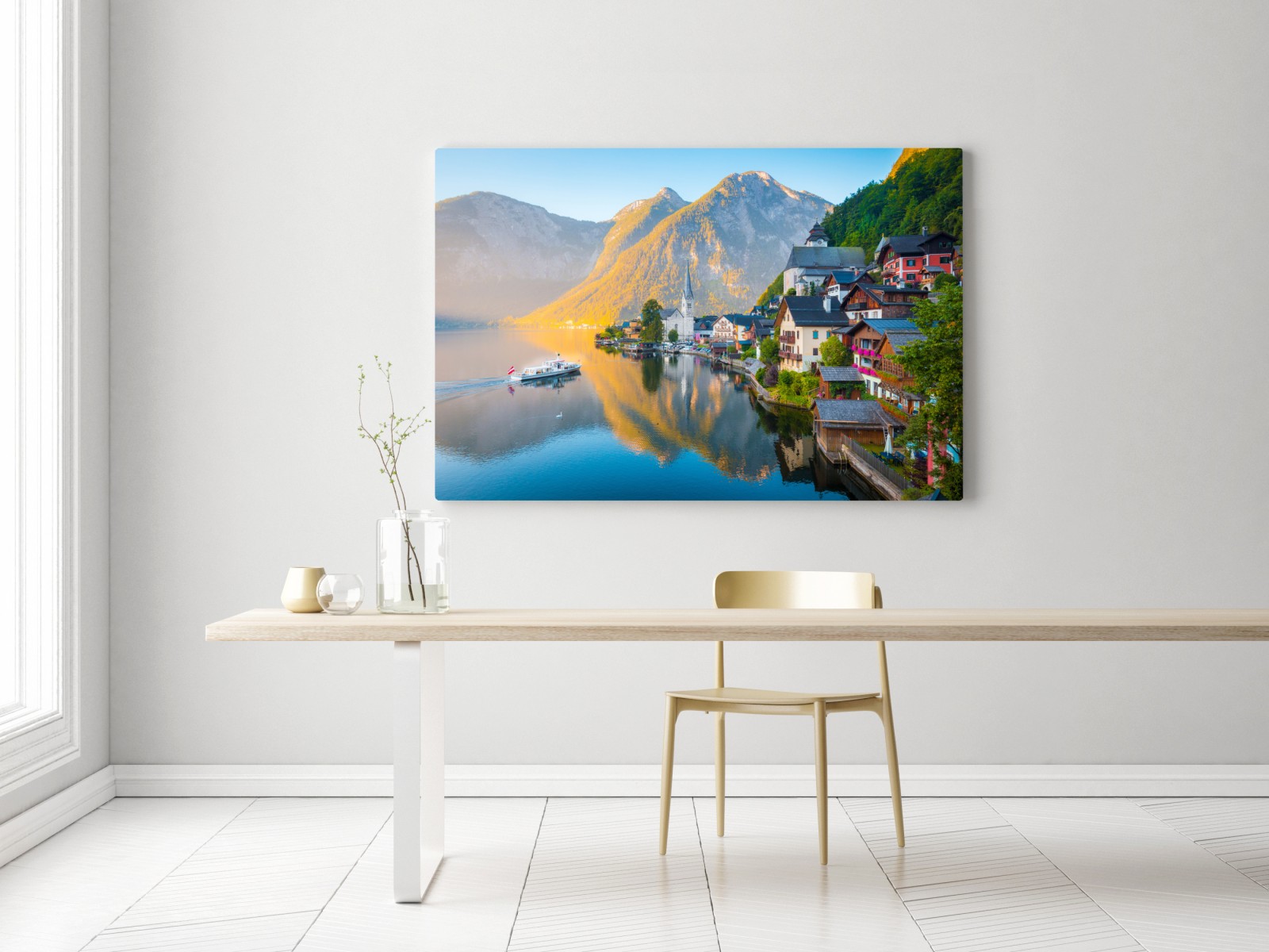 Obraz na płótnie Poranny blask Hallstatt nad jeziorem