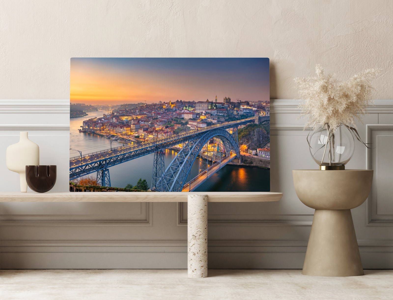 Obraz na płótnie Panorama Porto o zmierzchu z mostem Dom Luís I