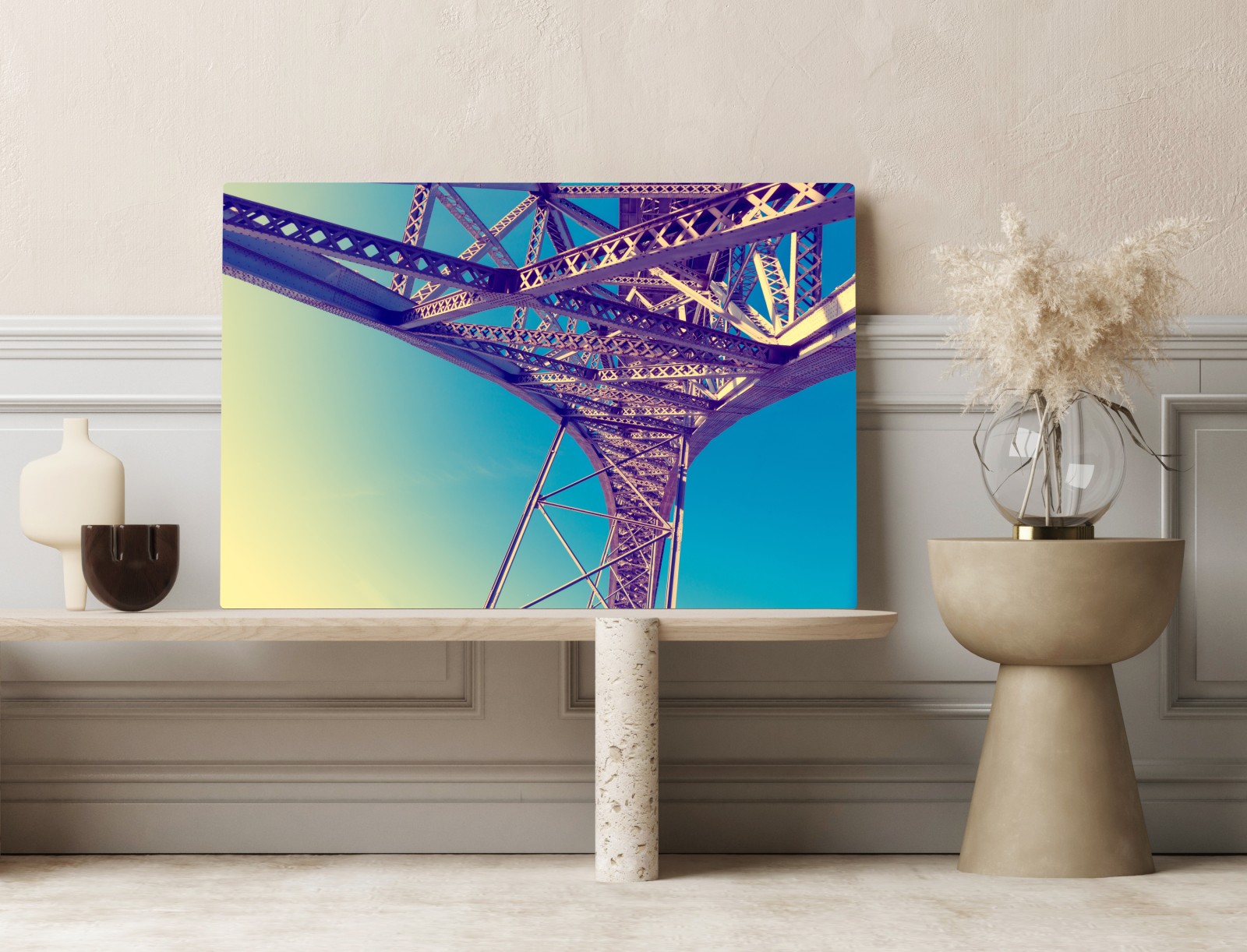 Obraz na płótnie Abstrakcyjna stalowa konstrukcja mostu w perspektywie