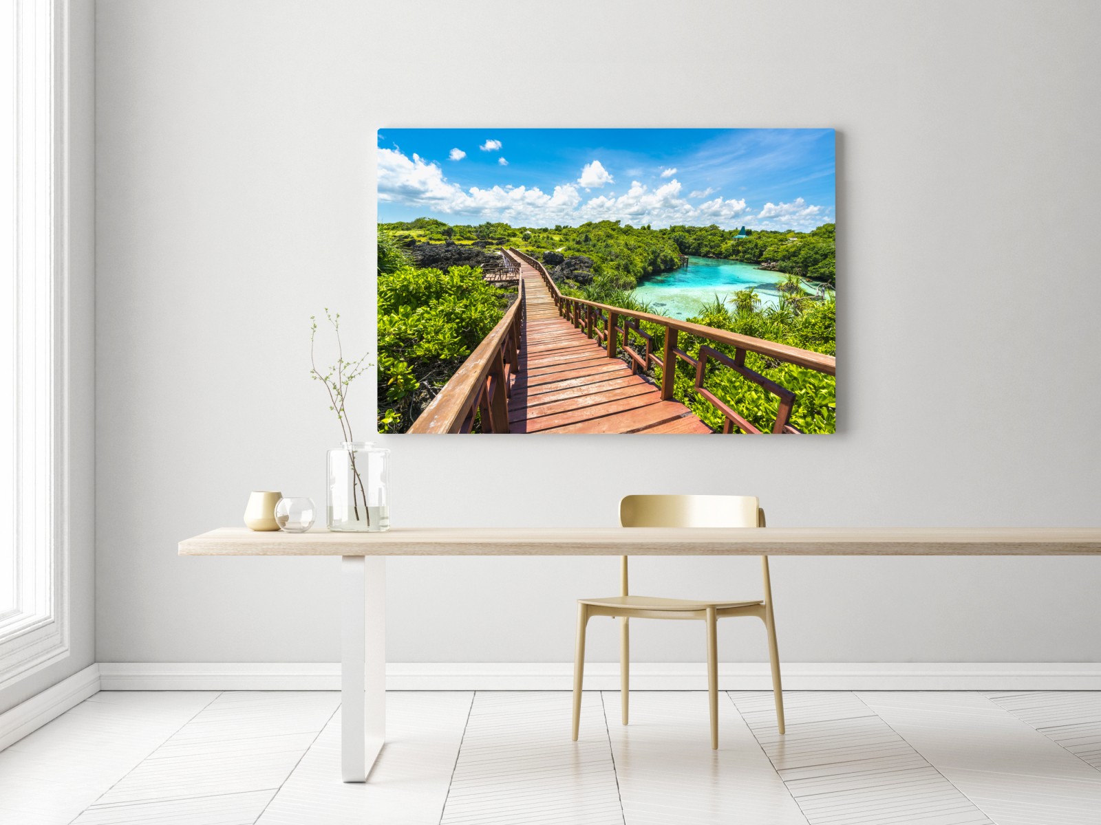 Obraz na płótnie Tropikalna drewniana kładka nad turkusową laguną