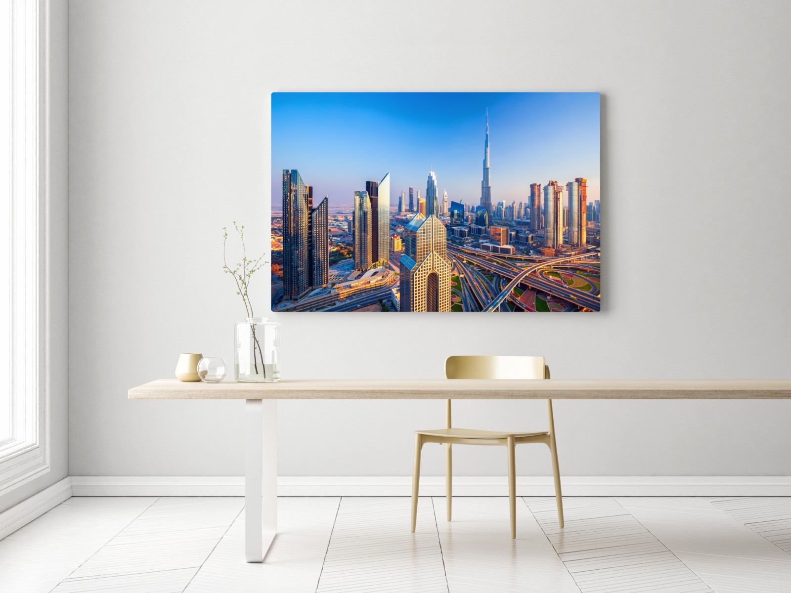 Dodaj do wnętrza nowoczesny klimat dzięki panoramicznemu widokowi Dubaju z ikoną Burj Khalifa i spektakularnymi drapaczami chmur.WięcejMniej
