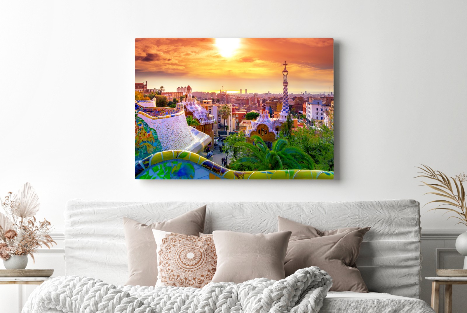 Obraz na płótnie Zachód słońca nad Park Güell w Barcelonie