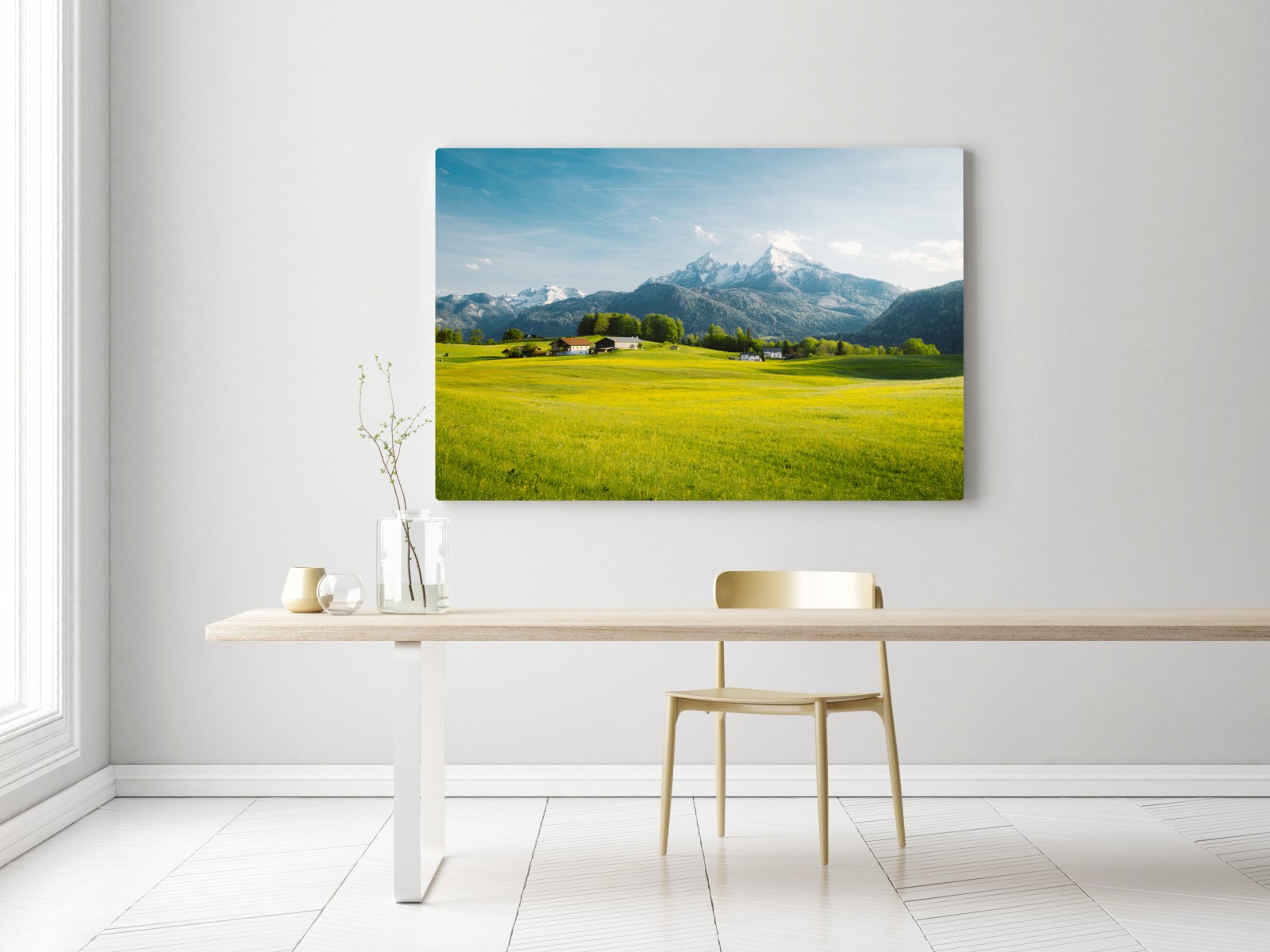 Obraz na płótnie Alpejska łąka pod ośnieżonymi szczytami