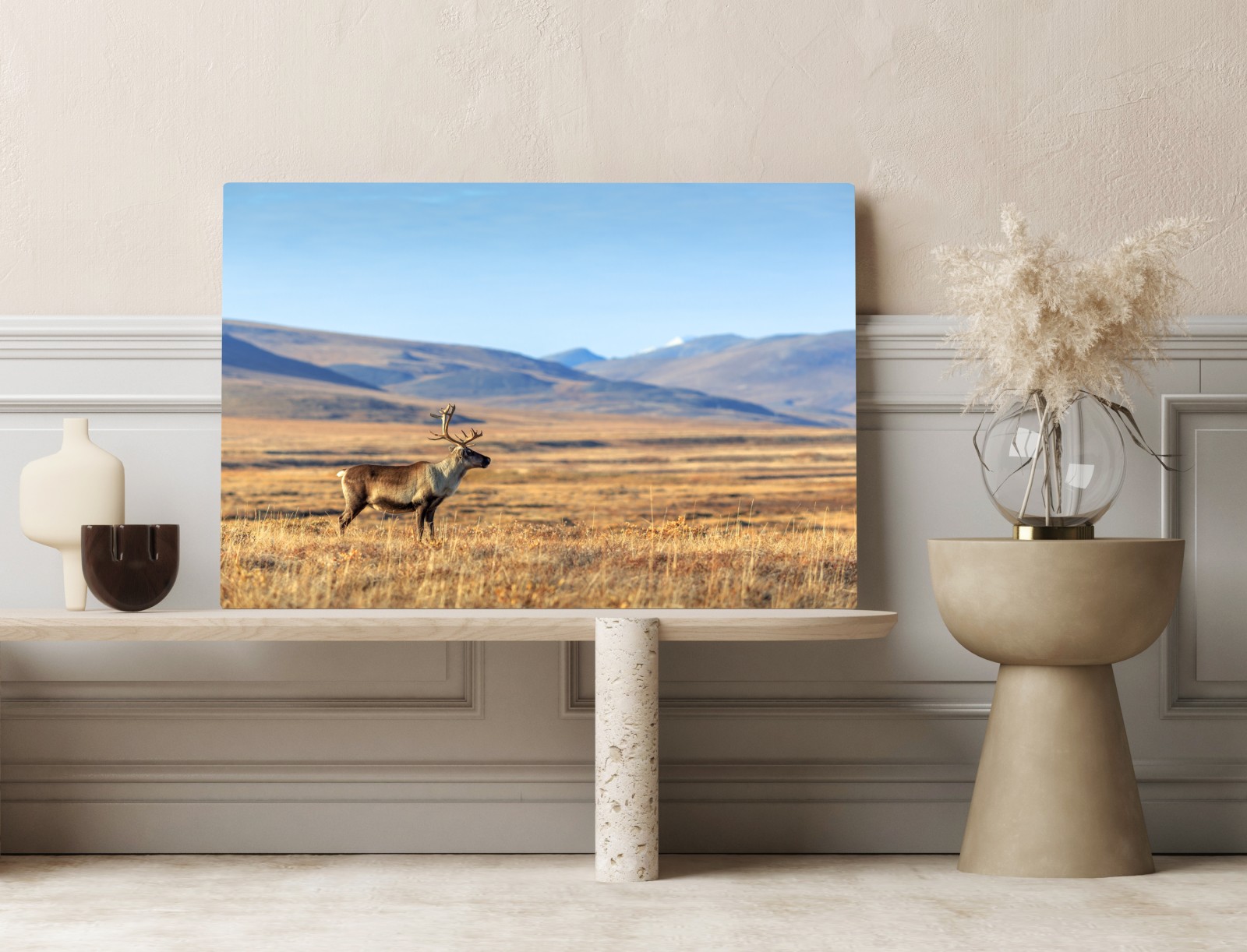 Obraz na płótnie Samotny renifer w tundrze w Czukotce