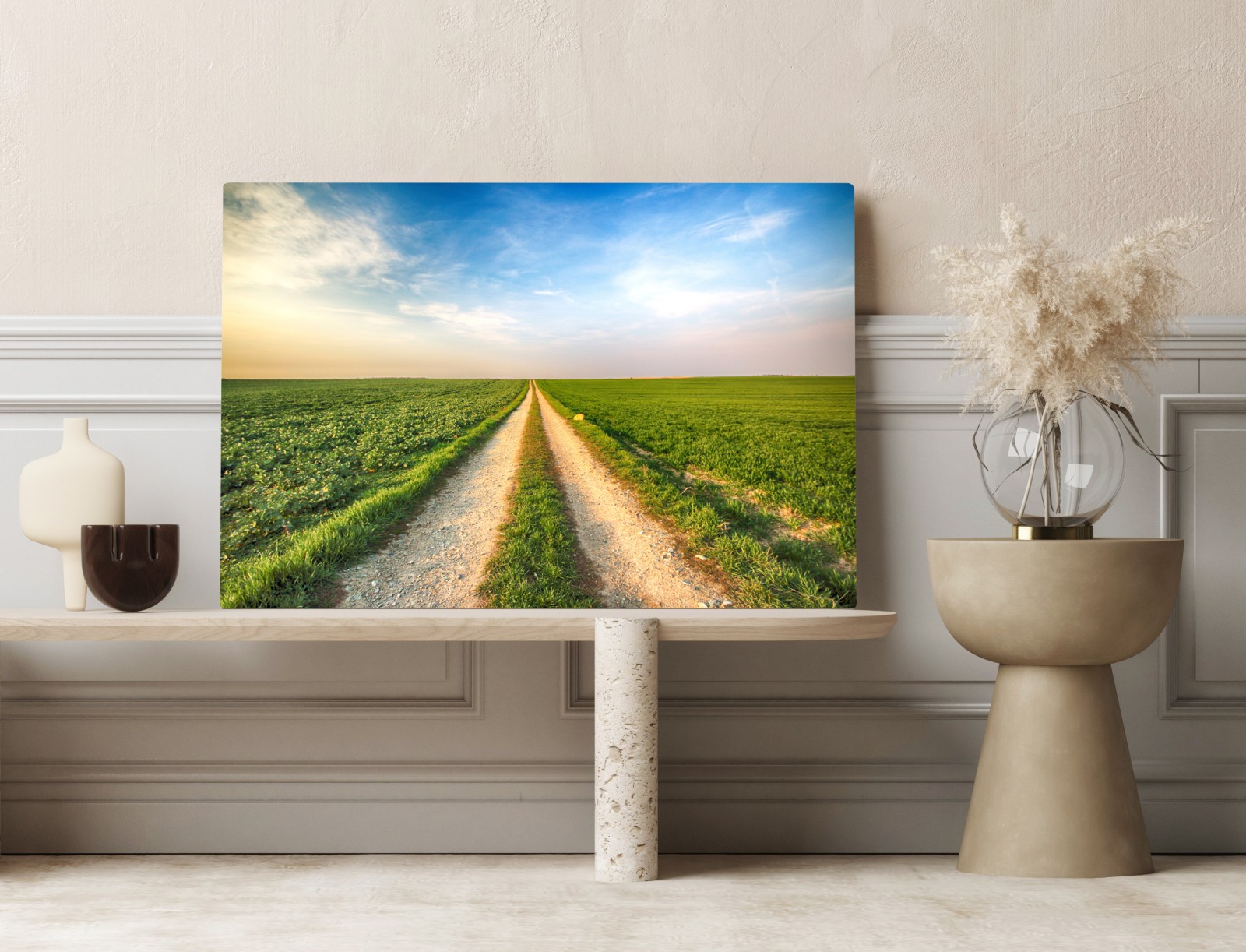 Obraz na płótnie Polna droga przez zielone pola