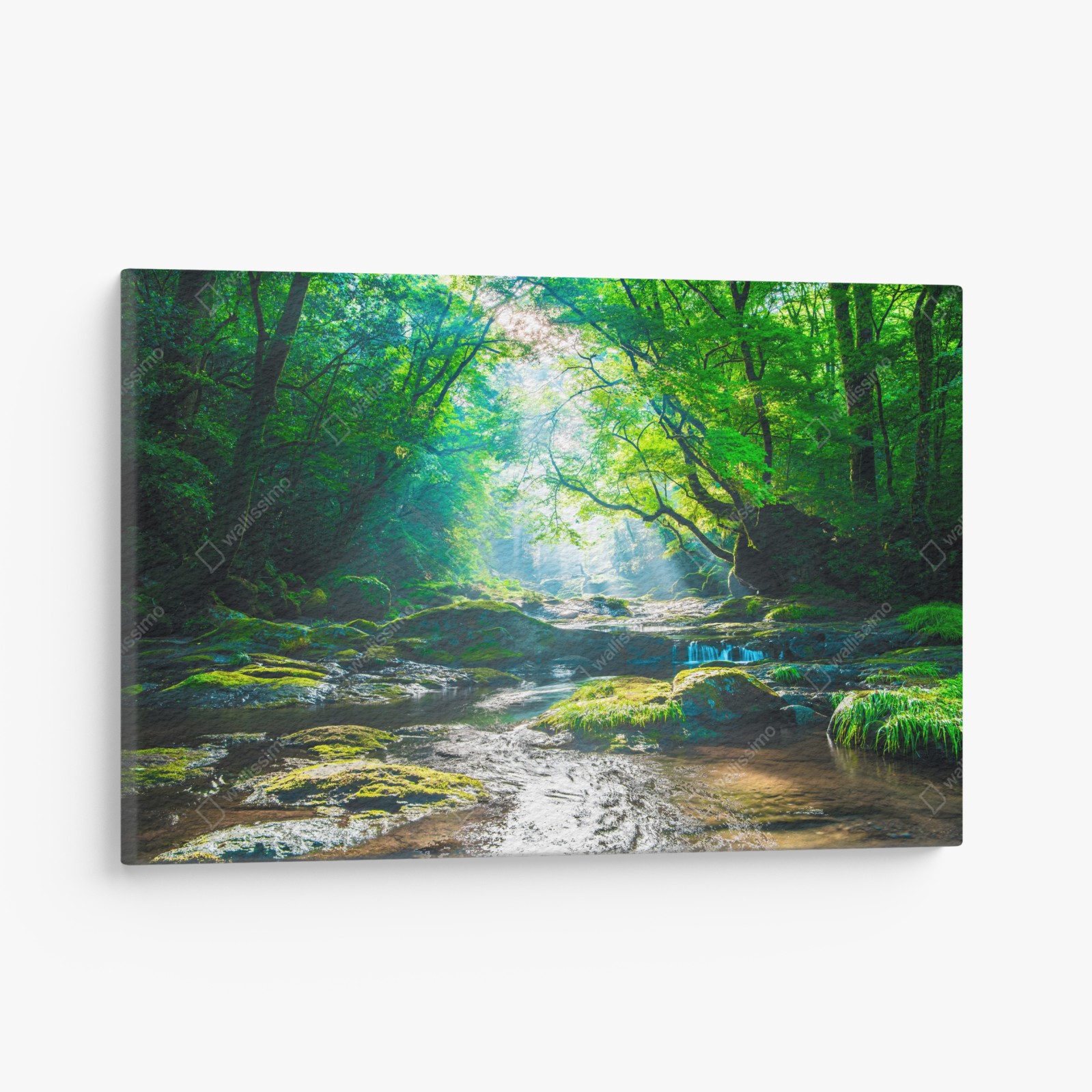 Obraz na płótnie Słoneczny leśny strumień z mchem