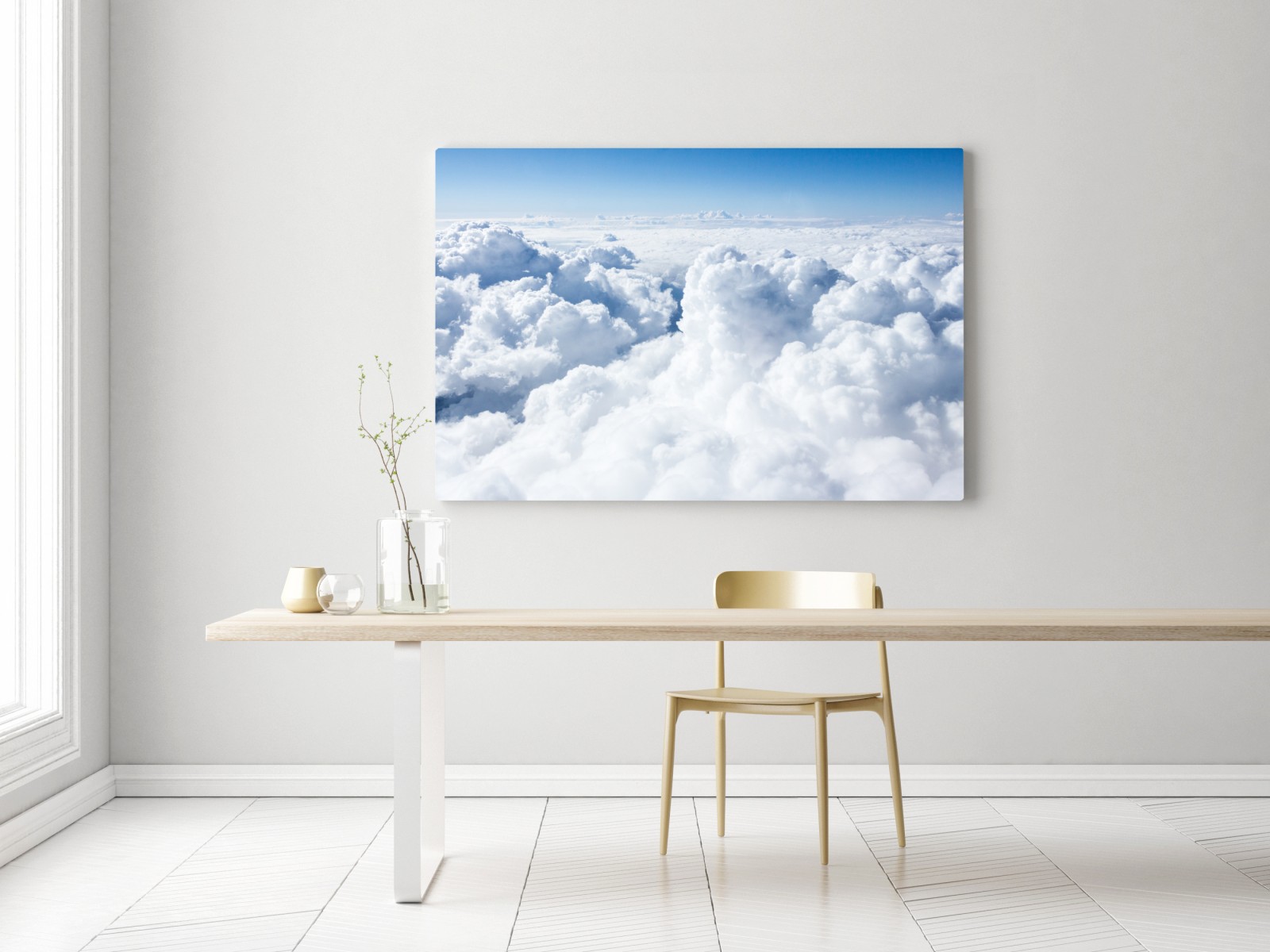 Obraz na płótnie Widok z lotu ptaka: miękkie chmury i błękitne niebo