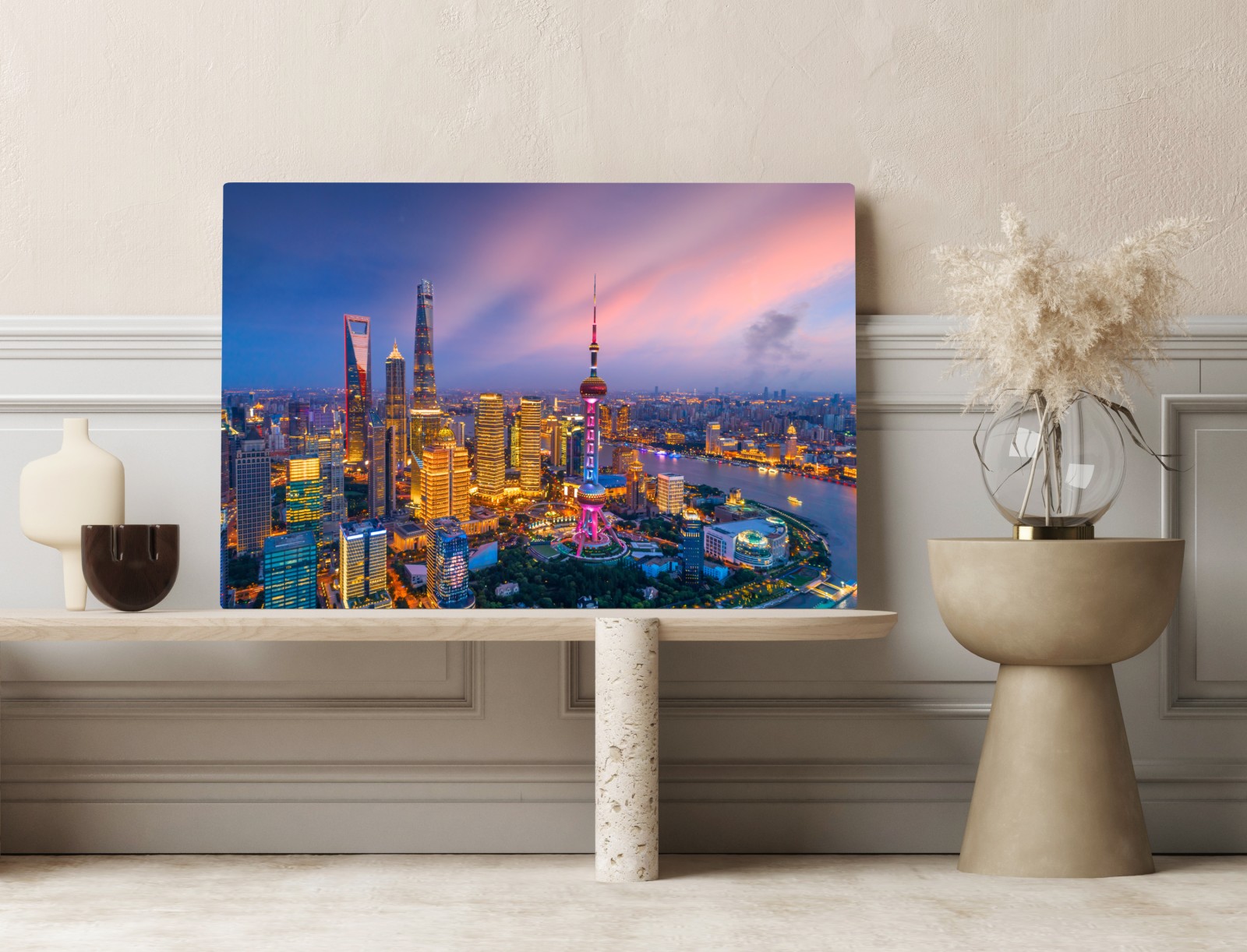 Obraz na płótnie Szanghaj nocna panorama miasta