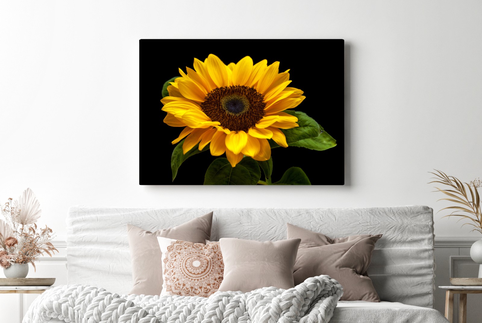 Obraz na płótnie Żywy słonecznik na czarnym tle