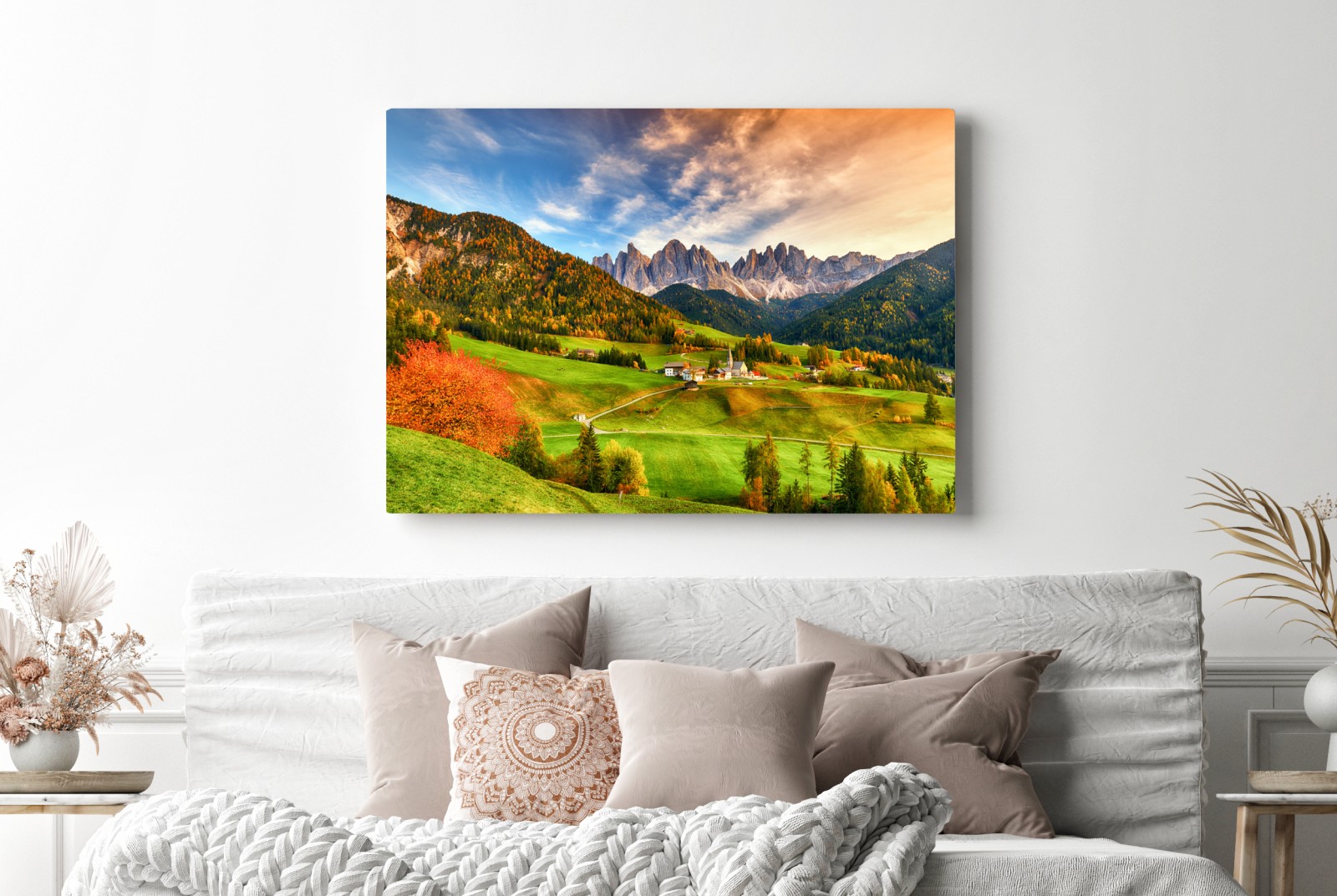 Obraz na płótnie Jesienny zachód słońca nad Santa Maddalena, Dolomity