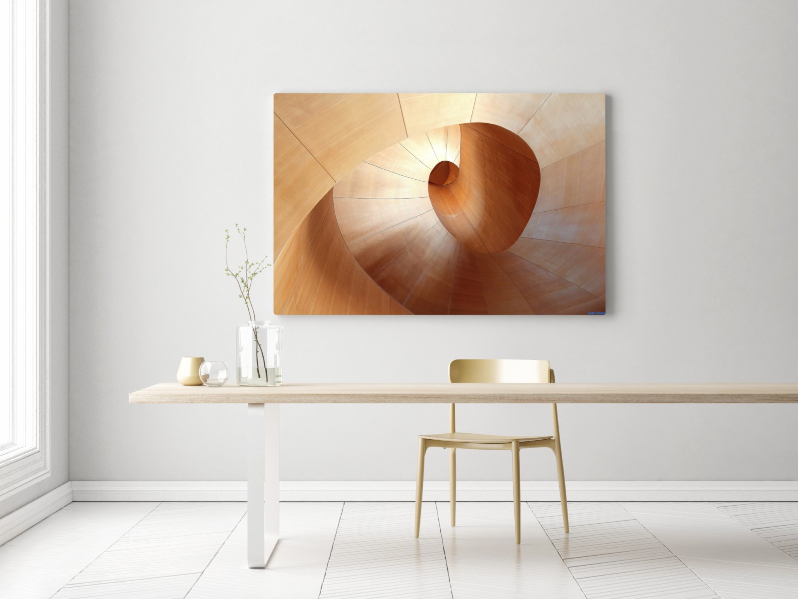 Odkryj kojące abstrakcyjne przedstawienie krzywizn i ciepłych tonów drewna, idealne do nowoczesnych wnętrz.WięcejMniej