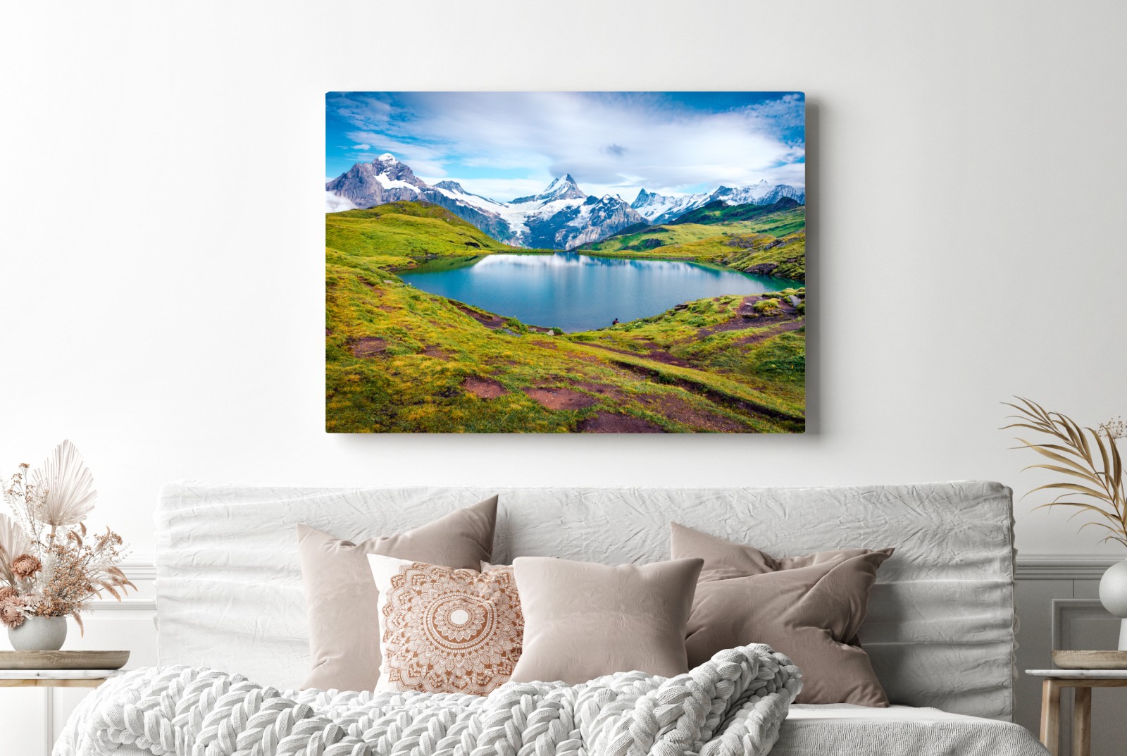Dodaj do wnętrza spokój Alp Szwajcarskich dzięki temu nasyconemu barwami widokowi na jezioro Bachalpsee i ośnieżone szczyty.WięcejMniej