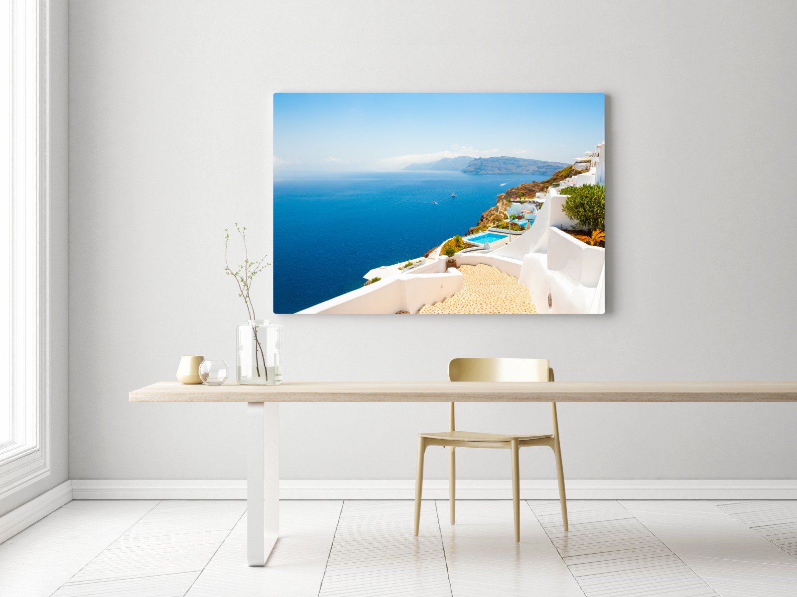 Obraz na płótnie Santorini widok na wybrzeże z białą architekturą