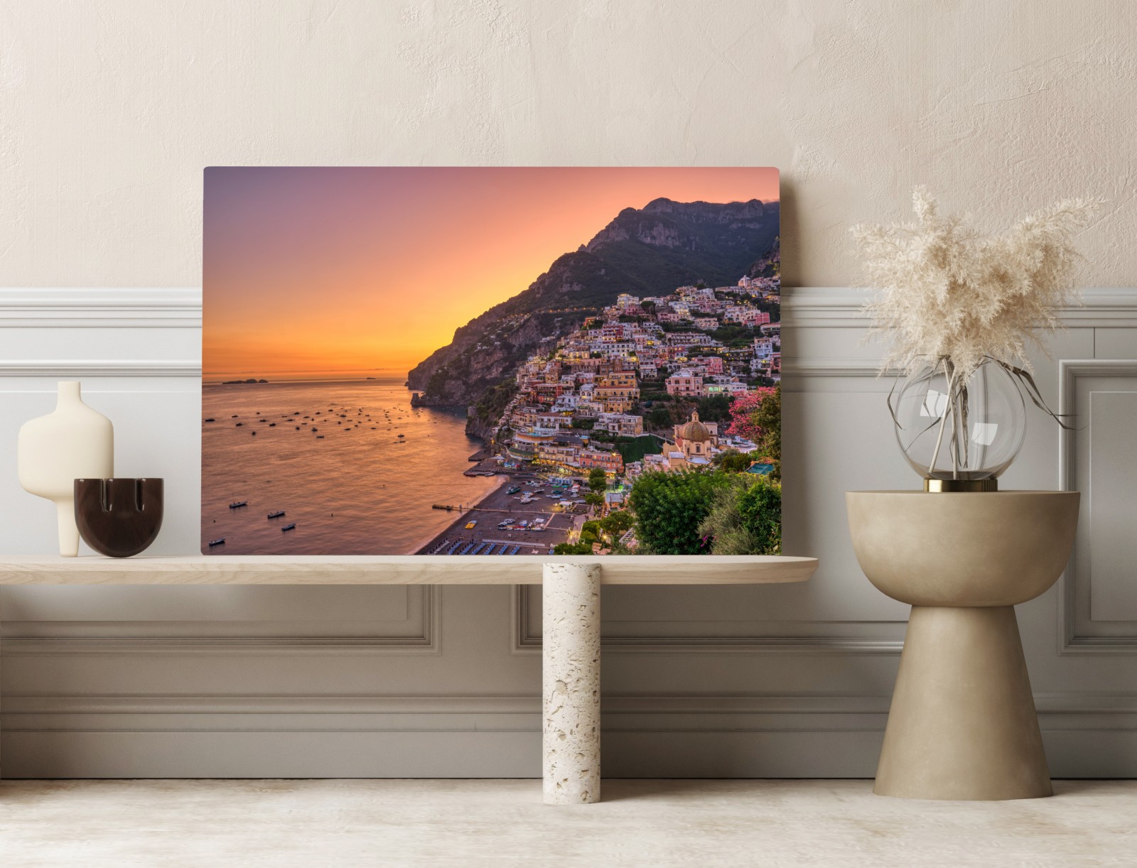 Obraz na płótnie Zachód słońca nad Positano, Wybrzeże Amalfitańskie