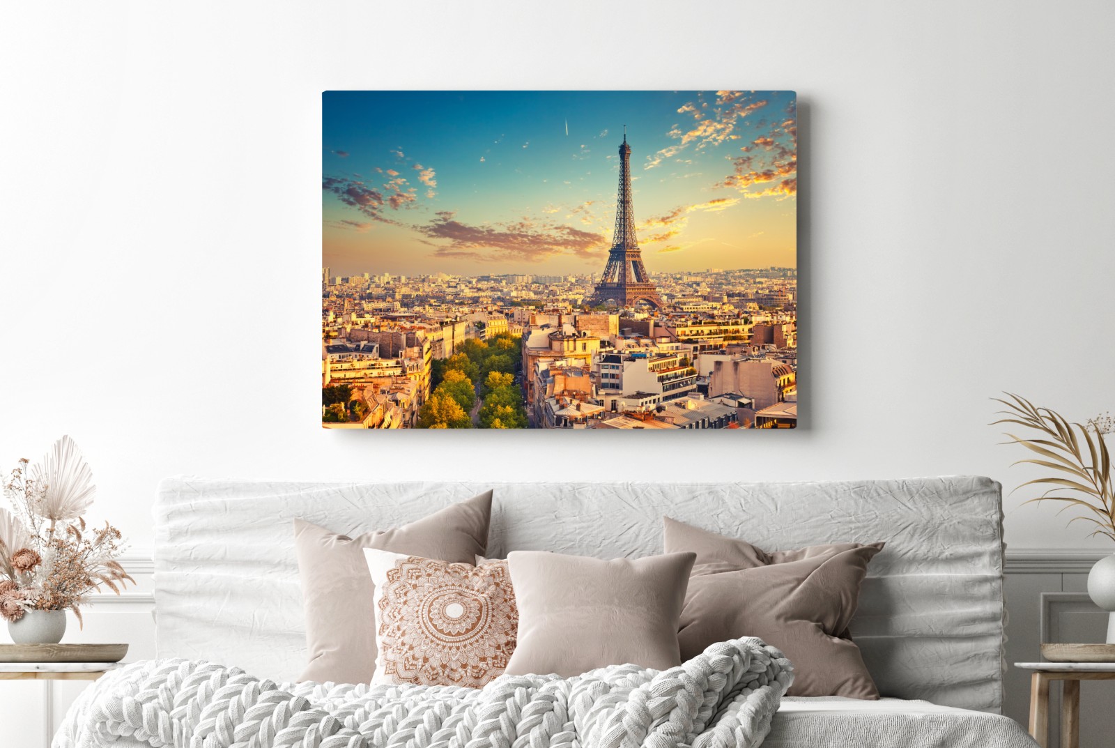 Obraz na płótnie Zachód słońca nad panoramą Paryża z Wieżą Eiffla