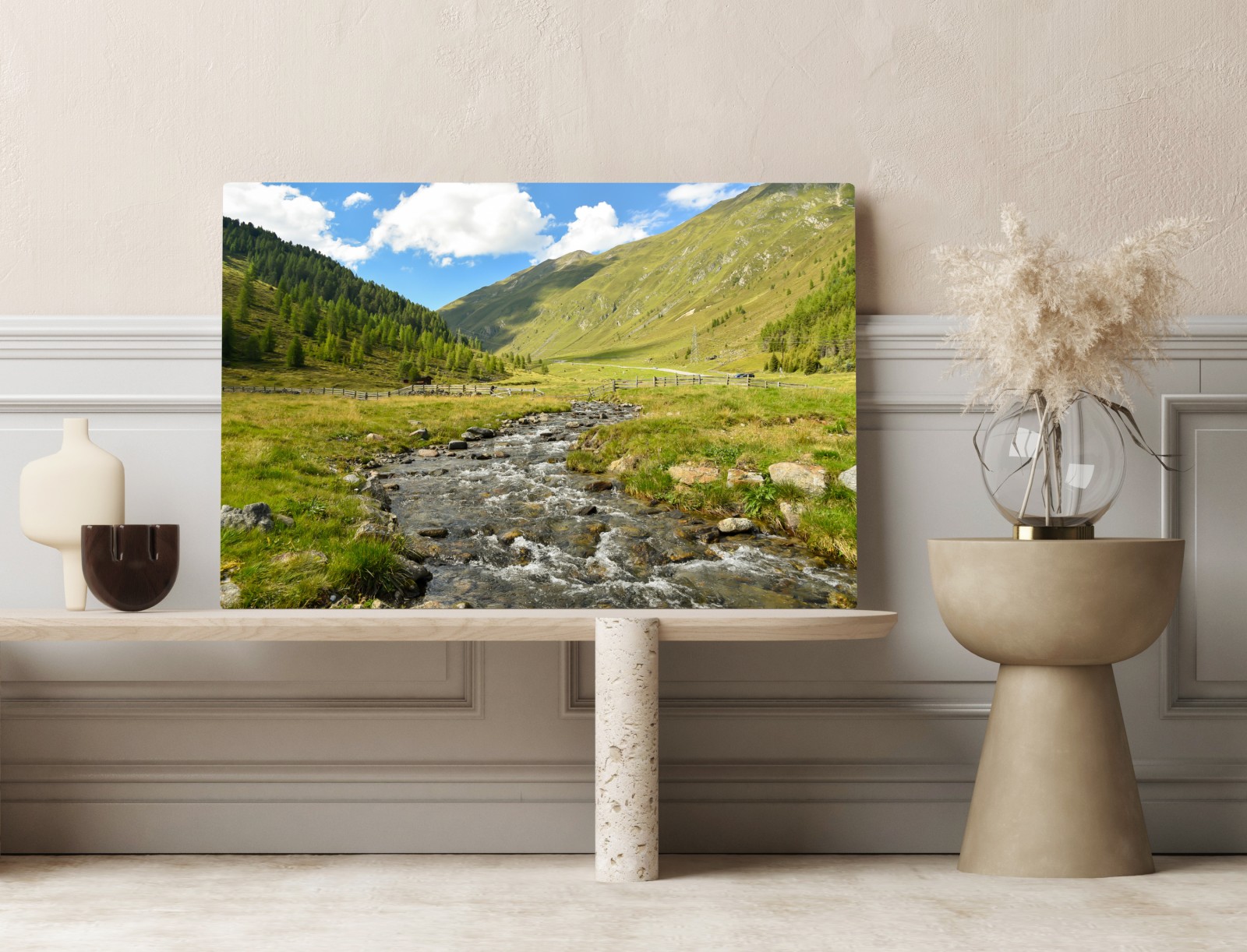 Obraz na płótnie Alpejski strumień w słonecznej dolinie